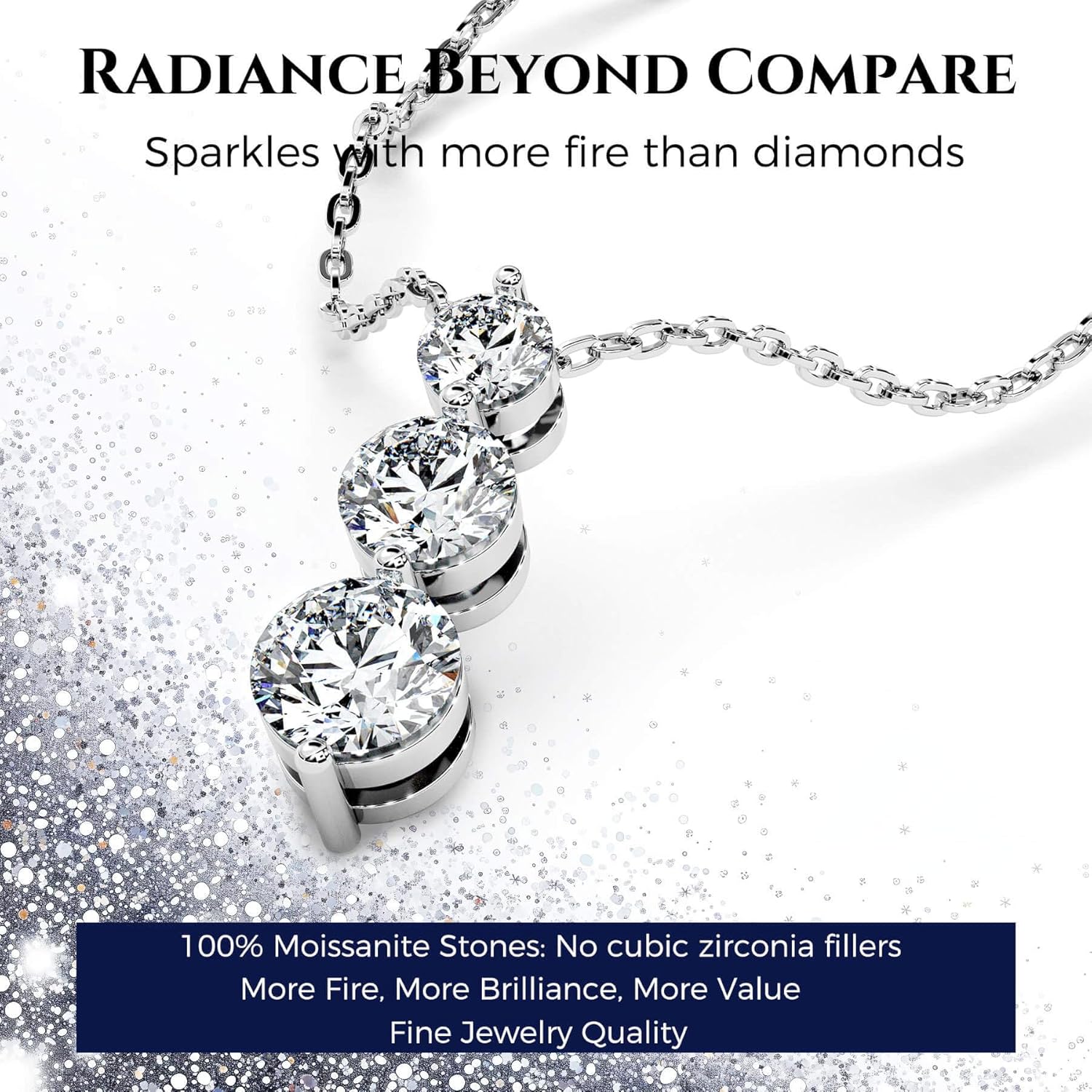 - Unmatched Brilliance, Moissanite Excellence: This necklace features three moissanite stones of varying sizes, each more radiant than the last. More fiery than diamonds and far more cost-effective, moissanite is the closest gem to a diamond in every aspect, bringing fine jewelry elegance to your collection without compromise.