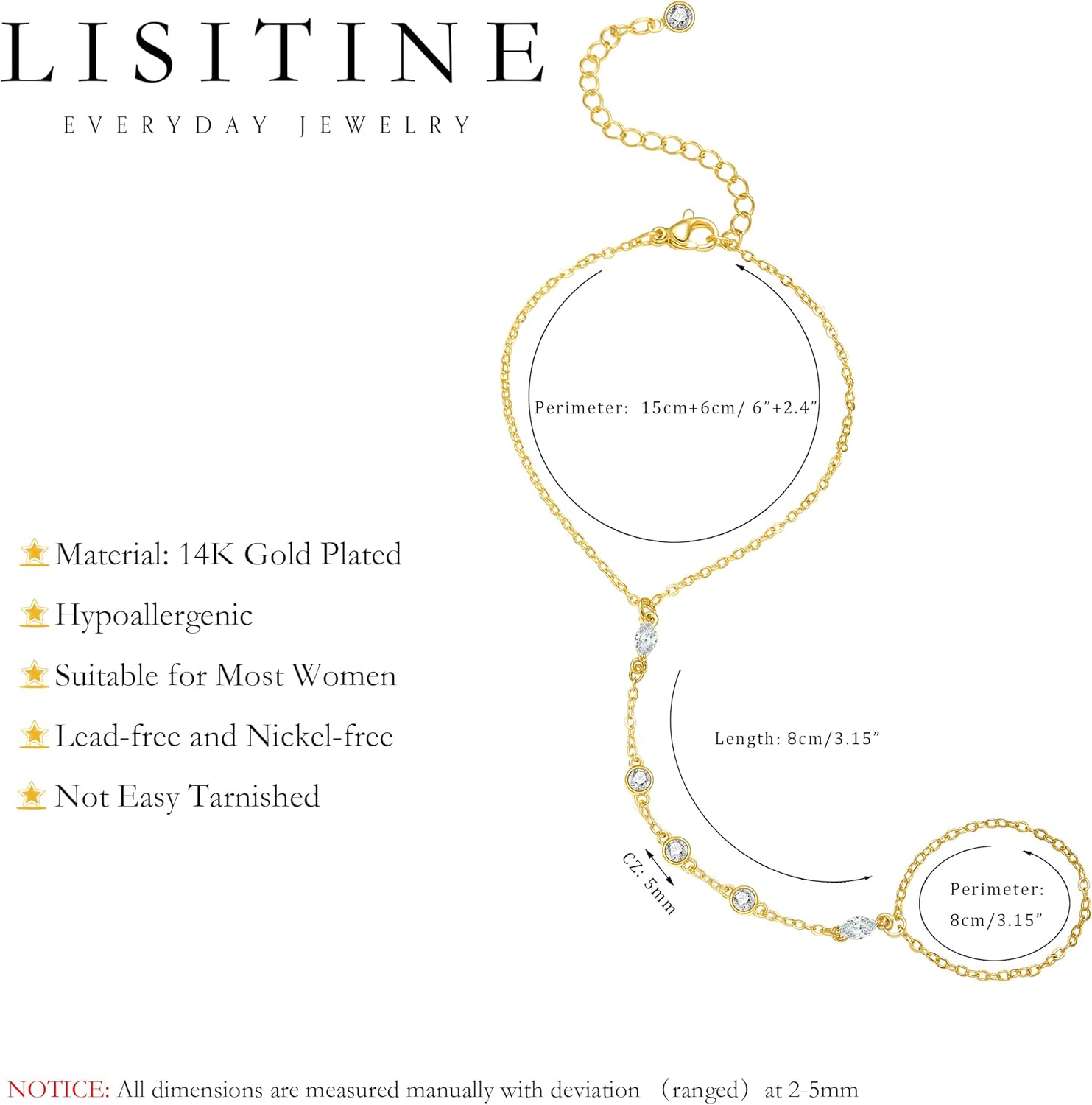 Listine Hand Chain Bracelet 14K Gold Plated Ring Bracelet Hand Chain Trendy Stuff for Women Dainty Hand Bracelets with Finger Ring Hand Jewelry for Women