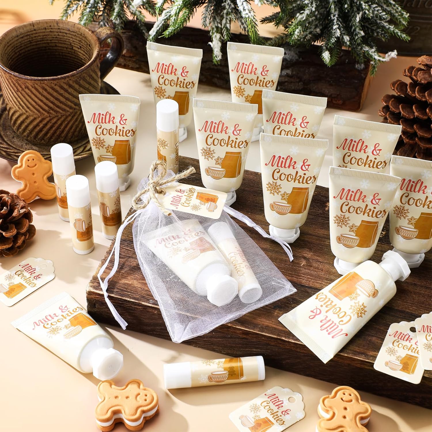 - Attractive Hand Cream Set: our Milk and Cookies Christmas hand cream and lipstick set is an ideal gift for Christmas party favors ; The fragrance of cherry provides comfort and tranquility, elevates your mood, and restores vitality to your mood; This set includes 48 hand creams, 48 organza bags, and 48 thank you tags, providing ample quantity to distribute to your guests at baby showers, birthday parties, and other events