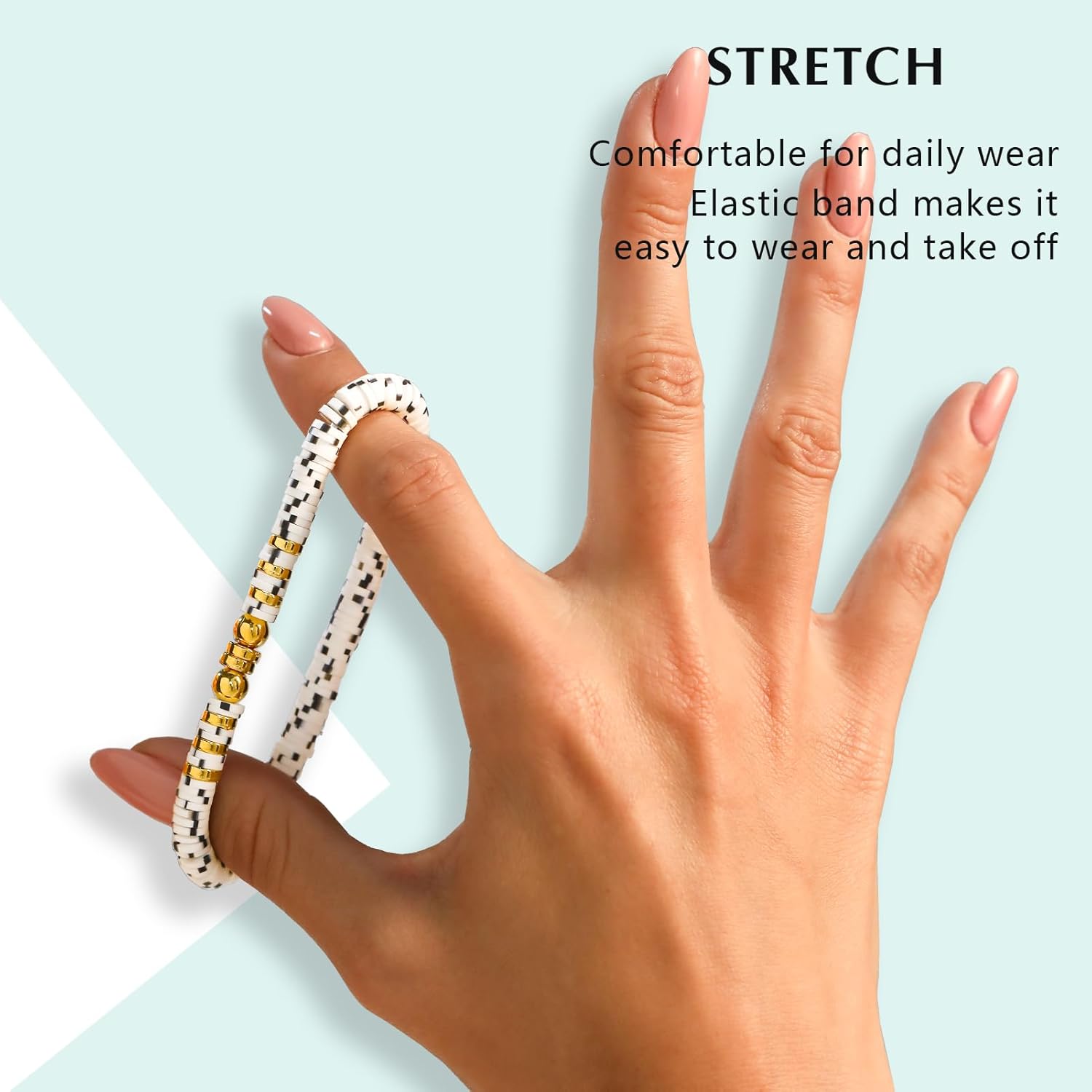 Friendship Bracelets Trendy Heishi Clay Bead Bracelets Stack Gold Beaded Stretch Bracelets for Women Boho Stackable Bracelets Bulk Cute Preppy Jewelry