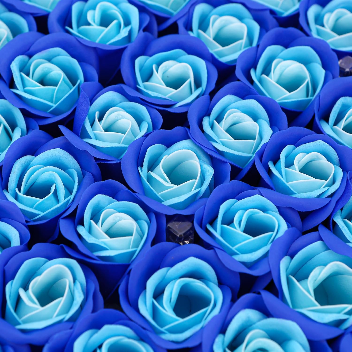 - Package: Get 81 blue rose soap in one set. Single Flower: Approx. 1.33" x 1.19". Set size: 31cm x 31cm (12.2" x 12.2"). Material: Soap.
