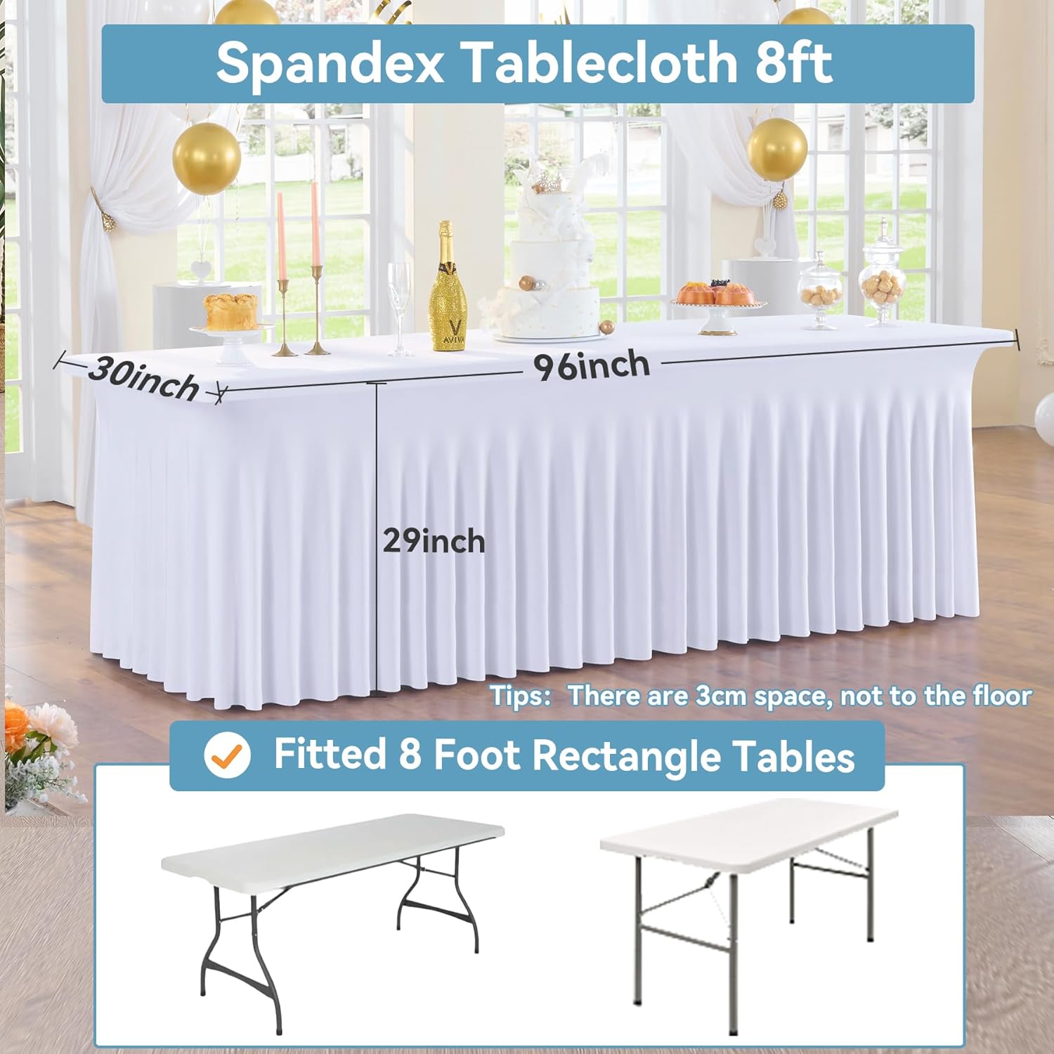 - Why Choose Spandex Tablecloth 8ft - Spandex material is a stretch table cloths for 8 ft tables with high stretchy, wrinkle free, durable and easy to clean, allow table covers for 8 foot tables to be used for a long time while maintaining a good shape. manteles de mesa para fiestas.