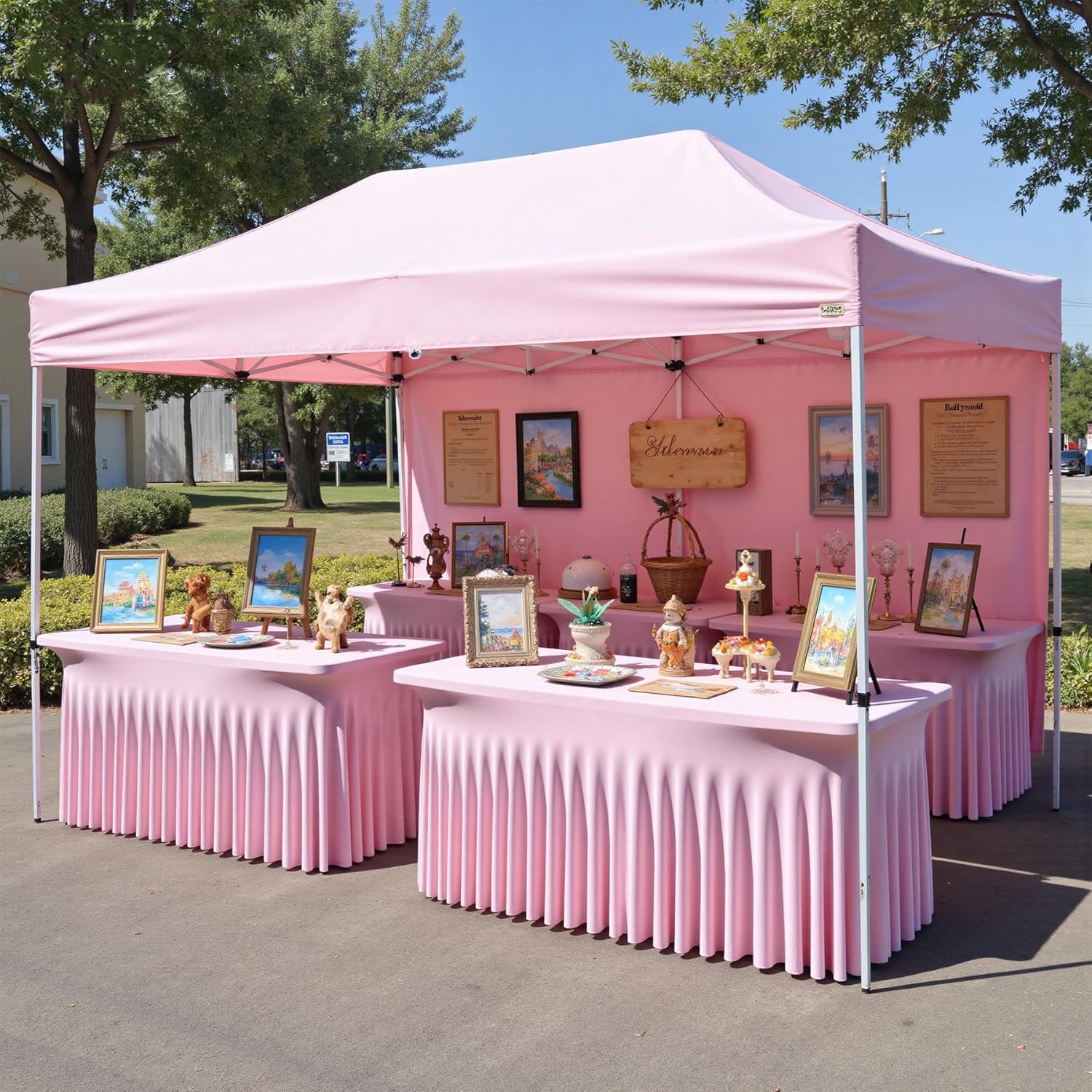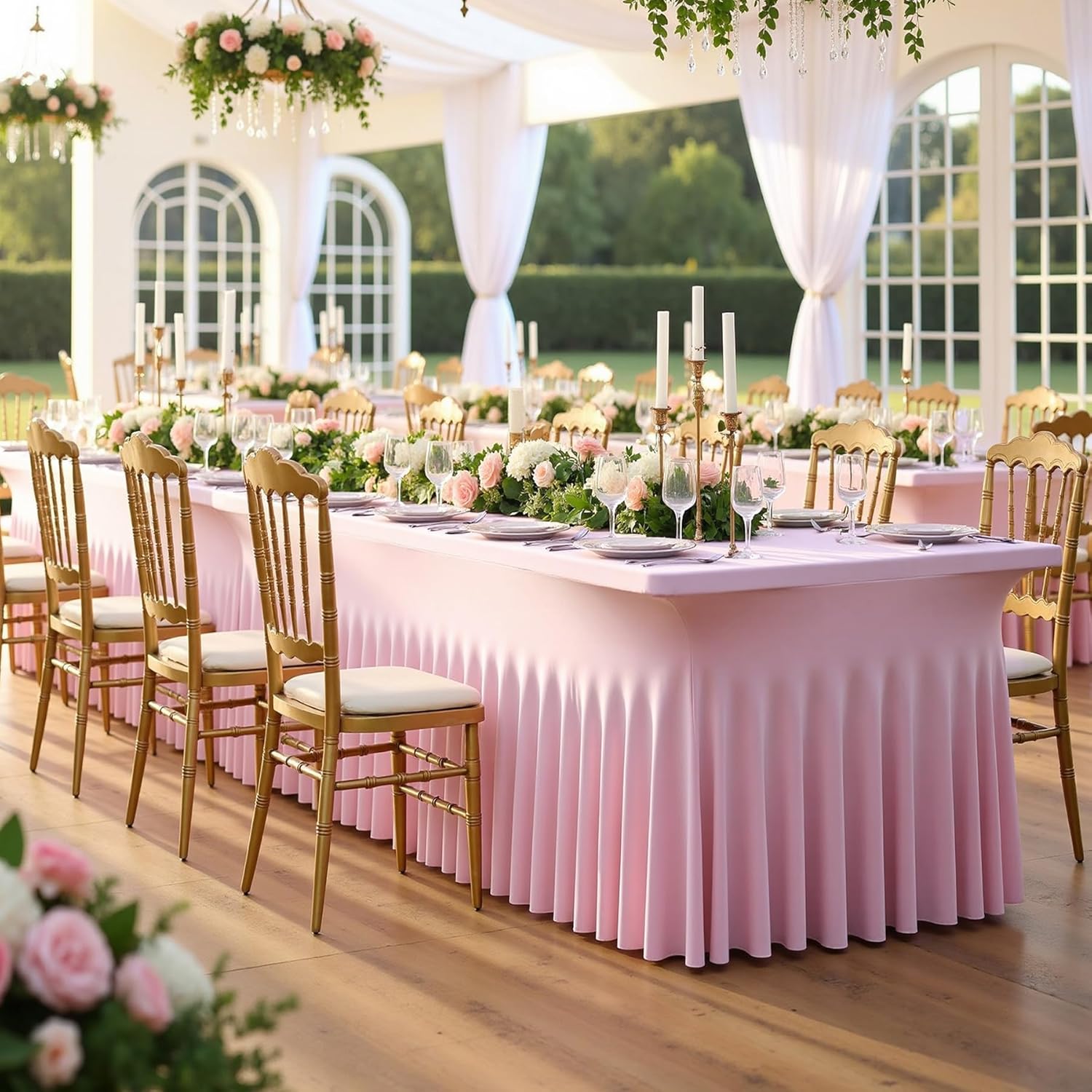 NSSONBEN 2 pk Baby Pink Spandex Tablecloth 6ft with Ruffle Table Skirt, Wrinkle Free Stretchy Fitted Tablecloths for 6 Foot Rectangle Tables, Elastic Spandex Table Covers for Weddings Parties Banquet