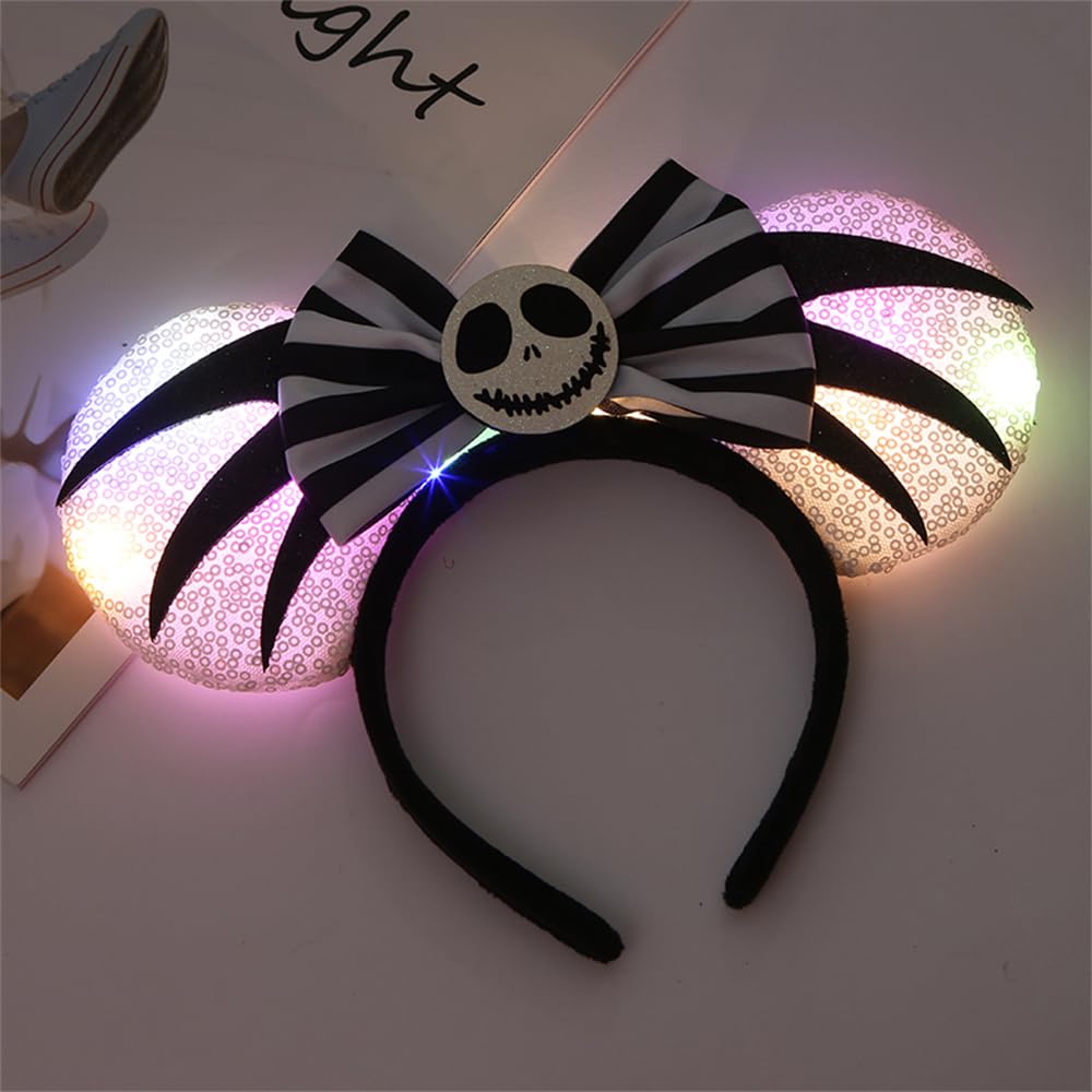 LED Mouse Ear Halloween Light Up Headband, Flash Glowing Hair Bow Party Decoration Headwear Hair Accessories for Women Girls