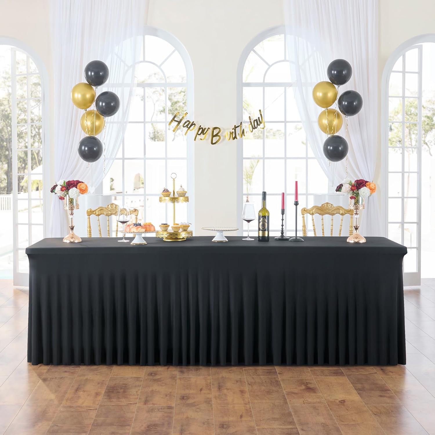 - Table Cloth or Table Skirt - The black table cloth rectangle table is one piece design of skirted tablecloth, Spandex table cover 8ft with dest skirt pleated,the elegant of a table skirt and easy to install of table cloths for 8 foot rectangle tables.