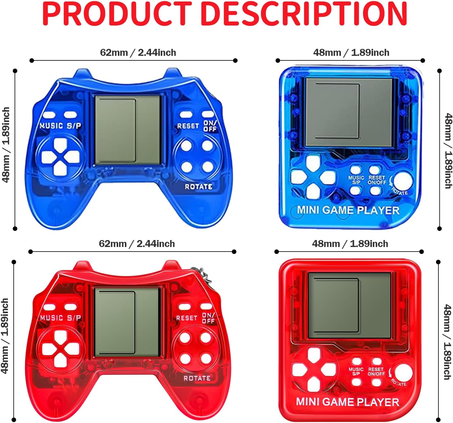- ๐ฎ PORTABLE VIDEO GAME KEYCHAIN ๐ฎ Mini video keychain is small and exquisite, which is very convenient to carry around.They're the perfect size to attach to your keys, backpack, or even your phone case,these keychains are sure to be a hit with gamers of all ages.