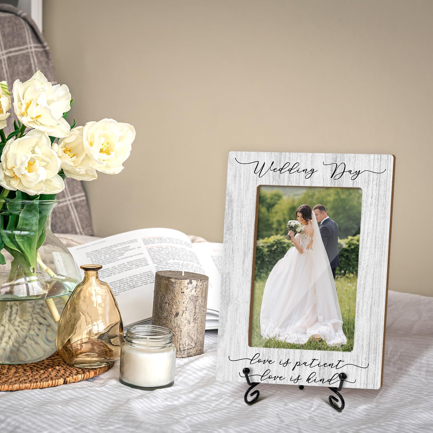 Wedding Picture Frame, Engagement Gifts Wedding Gifts For Newlyweds Bride Groom, 4x6 Wooden Picture Frame Tabletop Display Home Decor -25