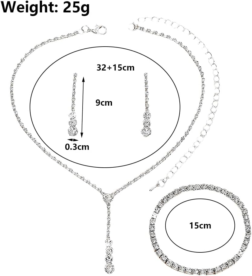 • Size:The size of the necklace in this prom jewelry set is about 12.6 inches +6 inches, the size of the bracelet is about 6.3 inches +2 inches and the size of the earrings is about 1.5 inches long and 0.1 inches wide. The total weight is about 0.8 oz, which is very lightweight, even if you wear it for a long time, you will not have a heavy wearing sense. This jewelry set is suitable for most women.