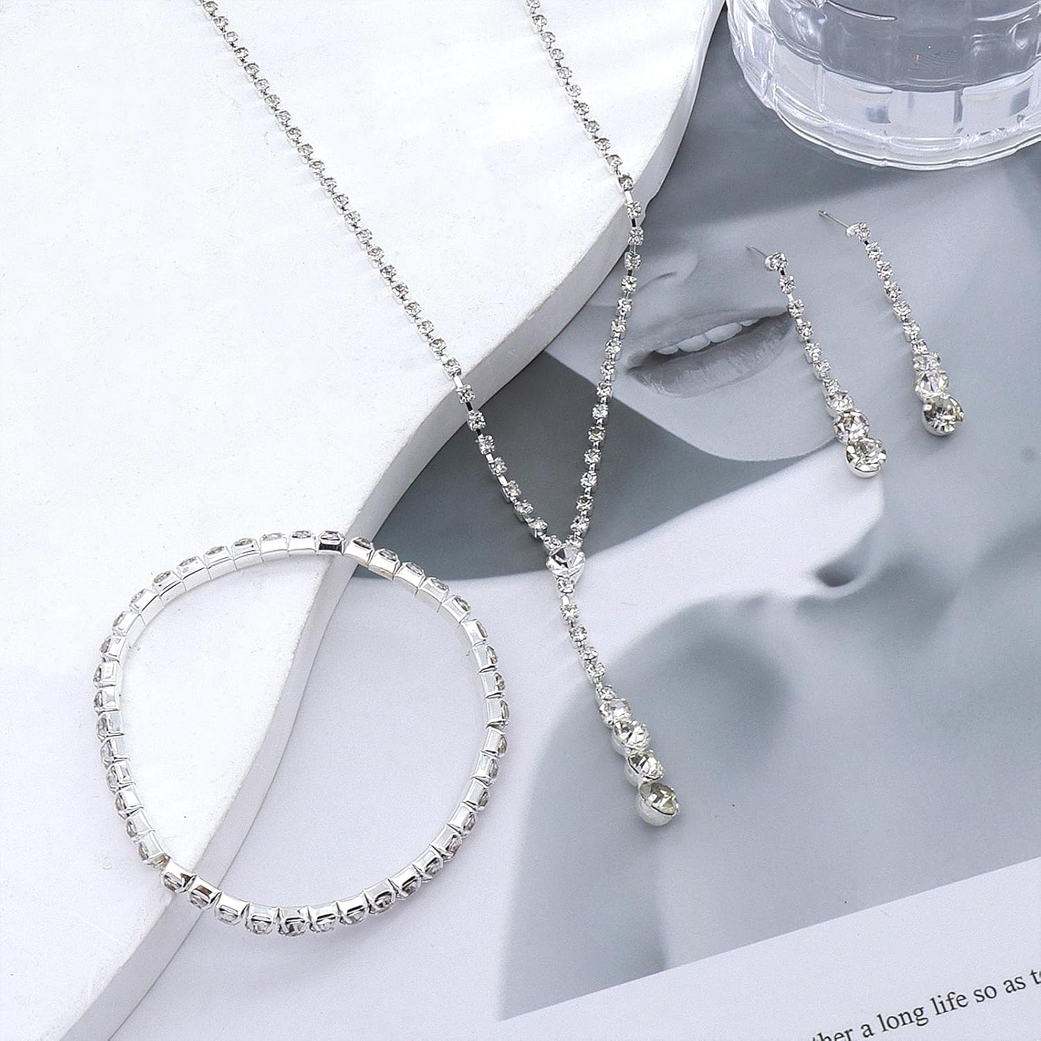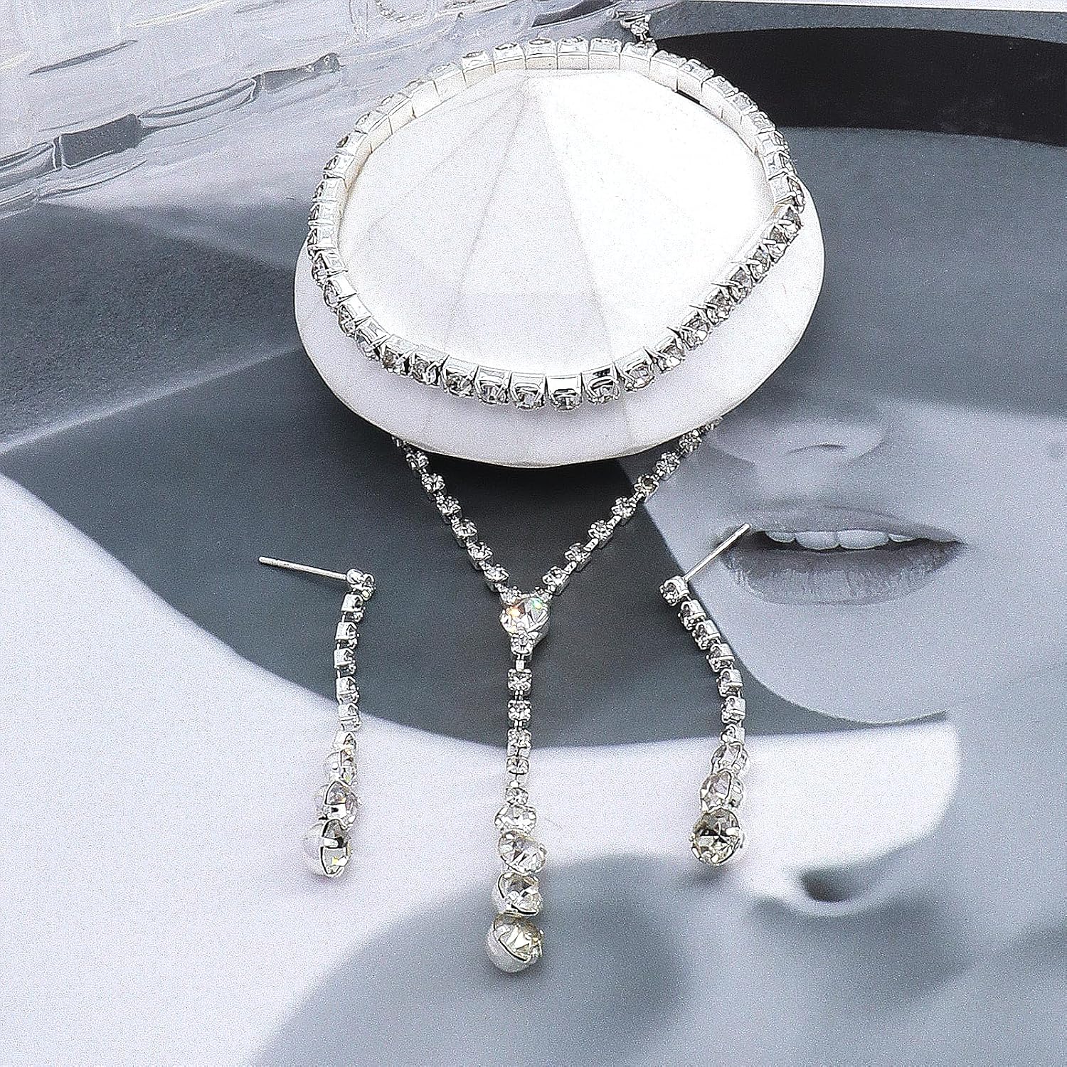 GIGB PBDK Dainty Silver Jewelry Set Crystal Rhinestone Pendant Necklace Bracelet Earrings Trendy Bridal Wedding Prom Dresses Costume Jewelry Sets for Women Wife