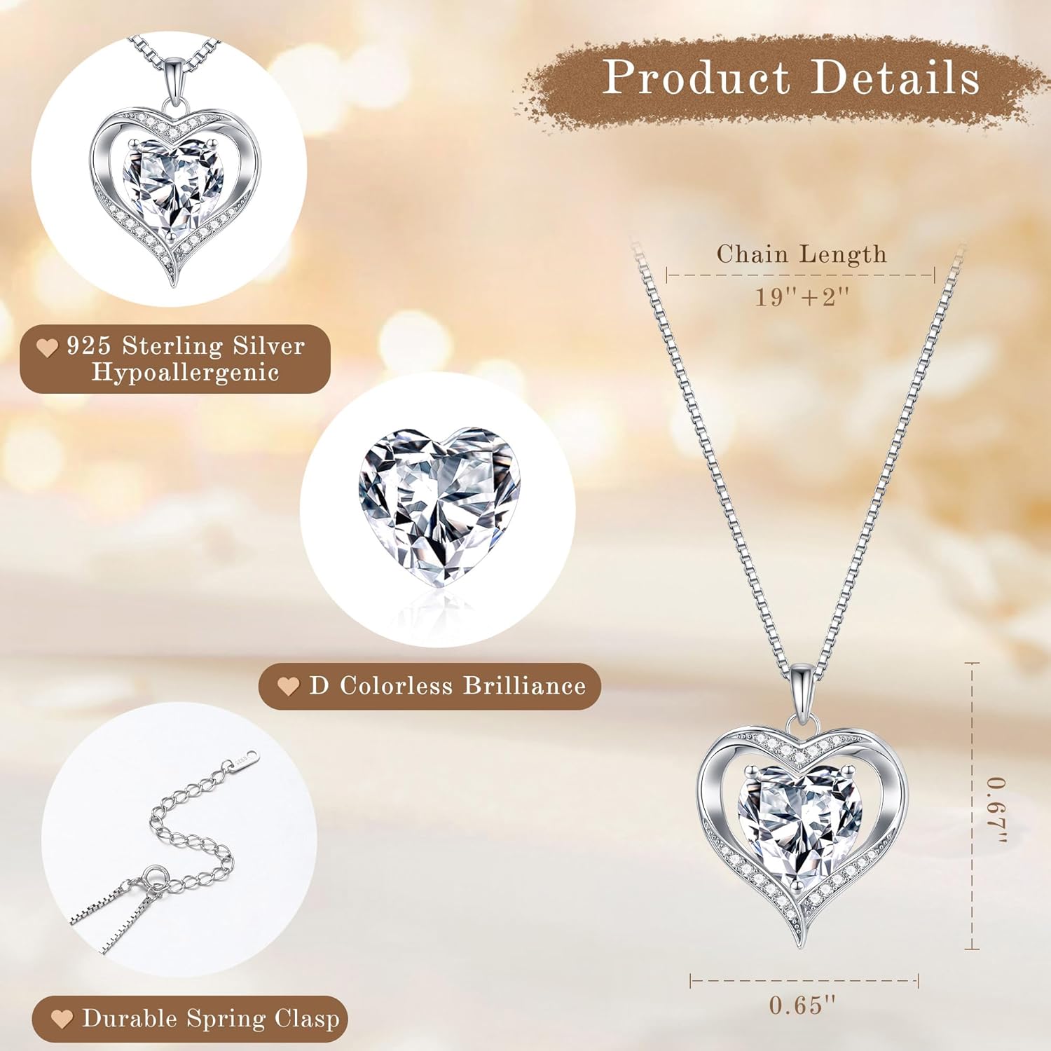 - MATERIAL: The beautiful heart-shaped pendant is encrusted with 1-3ct round and heart-shaped moissanite, reflecting a dazzling light. The chain is 19 inches+2.5 inches (adjustable) and has a lobster clasp. This length is suitable for almost anyone. It is an excellent choice for women as a daily wear gift