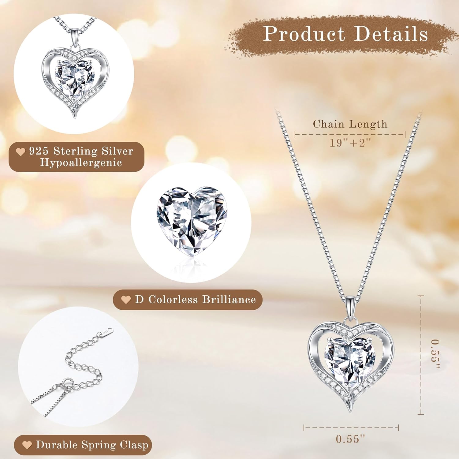 - MATERIAL: The beautiful heart-shaped pendant is encrusted with 1-3ct round and heart-shaped moissanite, reflecting a dazzling light. The chain is 19 inches+2.5 inches (adjustable) and has a lobster clasp. This length is suitable for almost anyone. It is an excellent choice for women as a daily wear gift