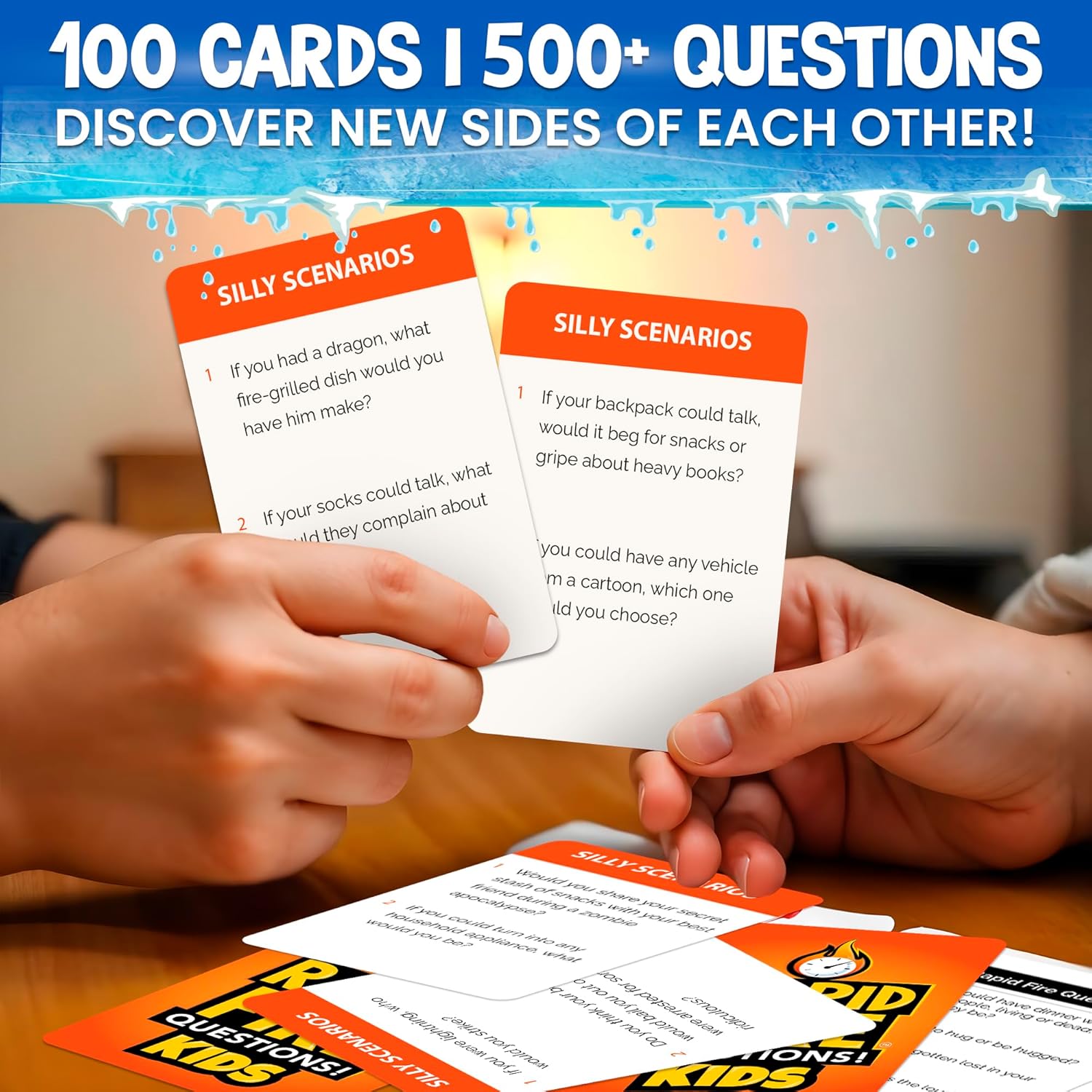 - BREAK THE ICE GAME FOR KIDS: This deck features 250 engaging conversation cards with 500+ fun questions; Ideal for kids 8-12 and adults to spark engaging discussions, build connections, and share joy together with friends or family