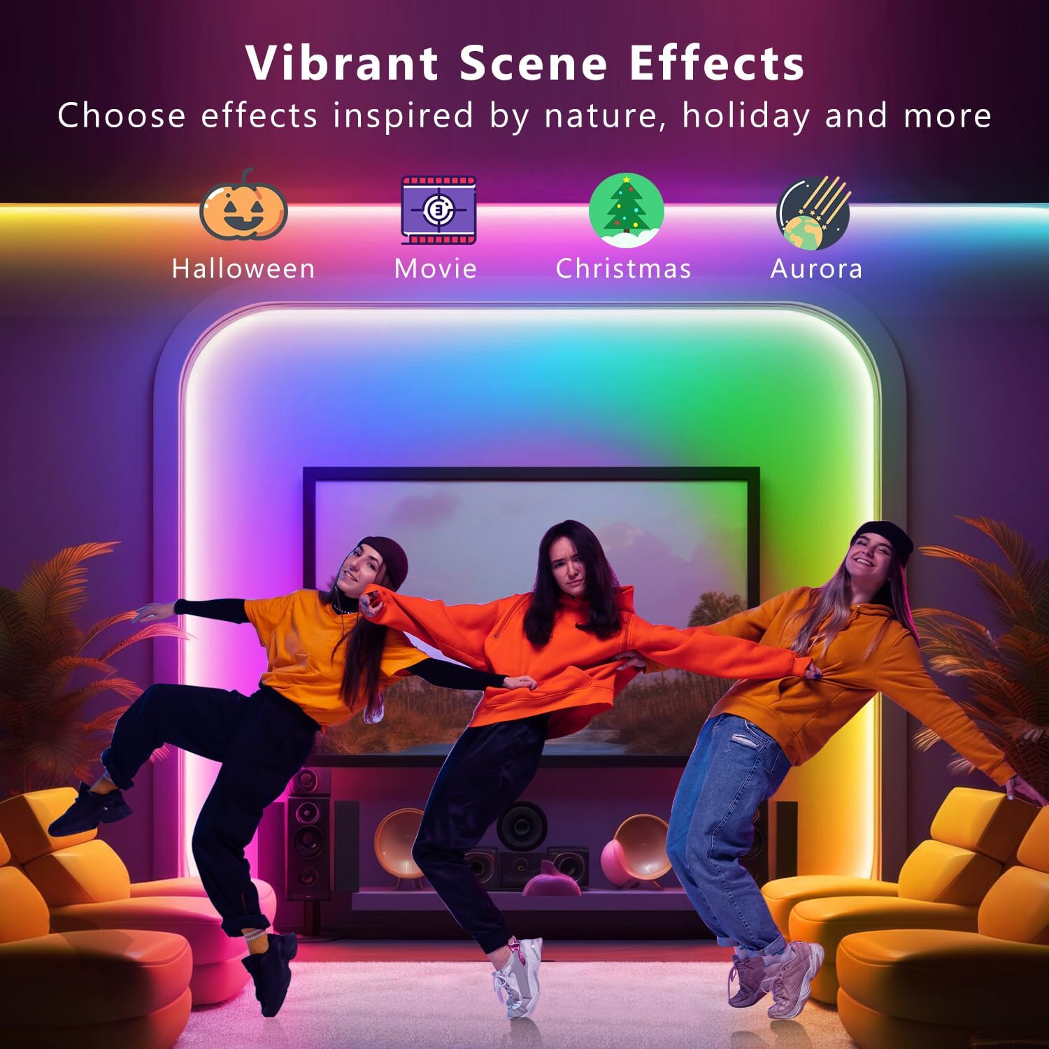 - Upgraded smart ic lights: Led strip lights for bedroom display multiple colors on one line at a time compared with traditional rgb lights. A colorful combination of led strip lighting for bedroom brings a strong visual impact for Halloween decor (Not Support Alexa)