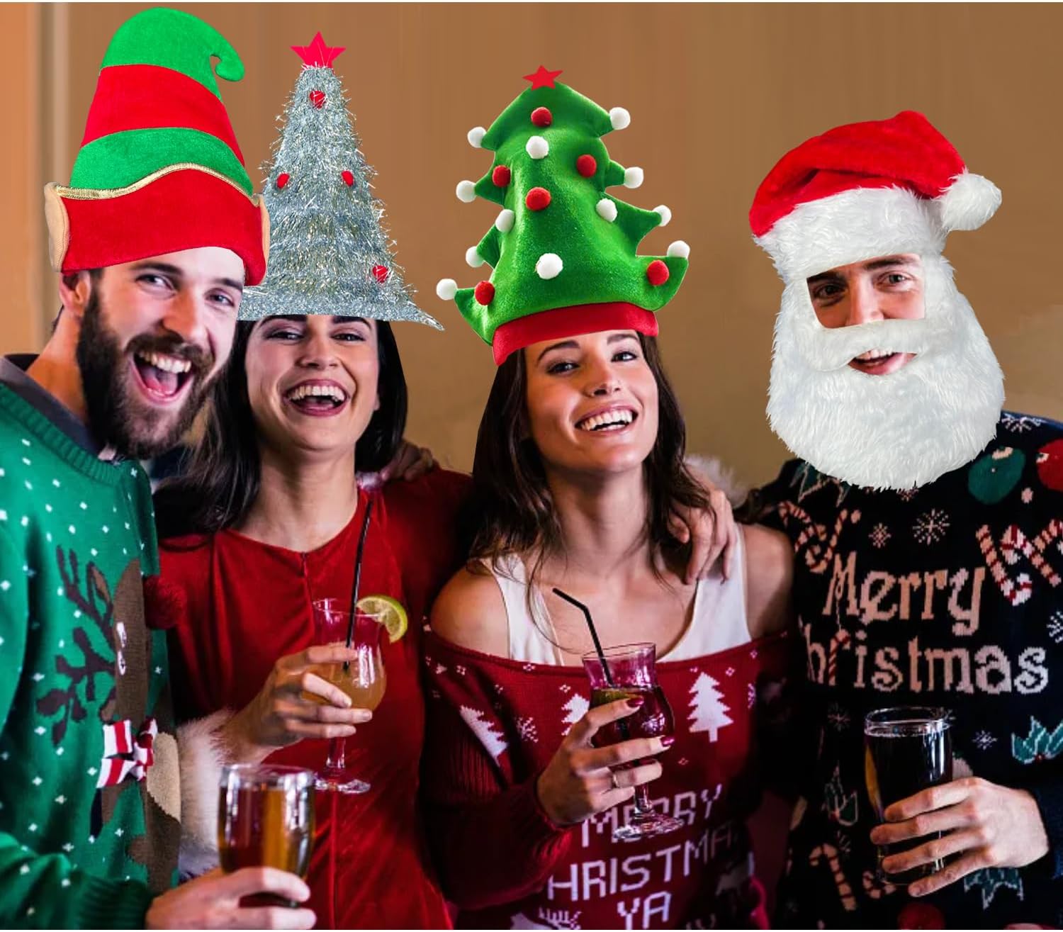 12 Assorted Funny Christmas Hats Santa Elf Hat Christmas Photo Booth Props Costume Hats for Adult Teen