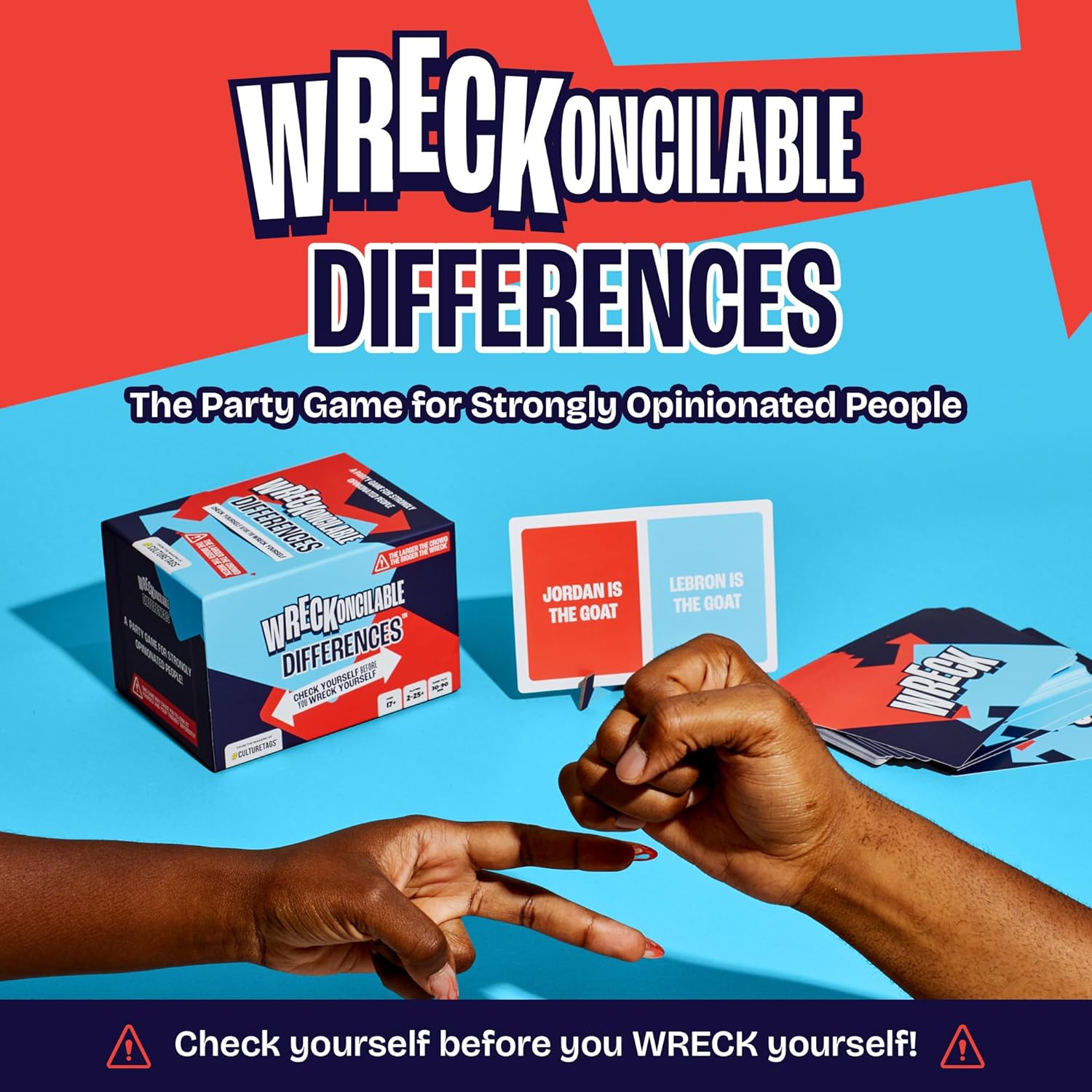 - DEBATE, VOTE & WRECK—THE ULTIMATE PARTY GAME SHOWDOWN: WRECKoncilable Differences is a fast-paced adult party game where players face off in hilarious debates and settle differences with Rock, Paper, Scissors. Perfect for opinionated groups, wild nights, and unforgettable game nights. Ages 17+, 2–25+ players.