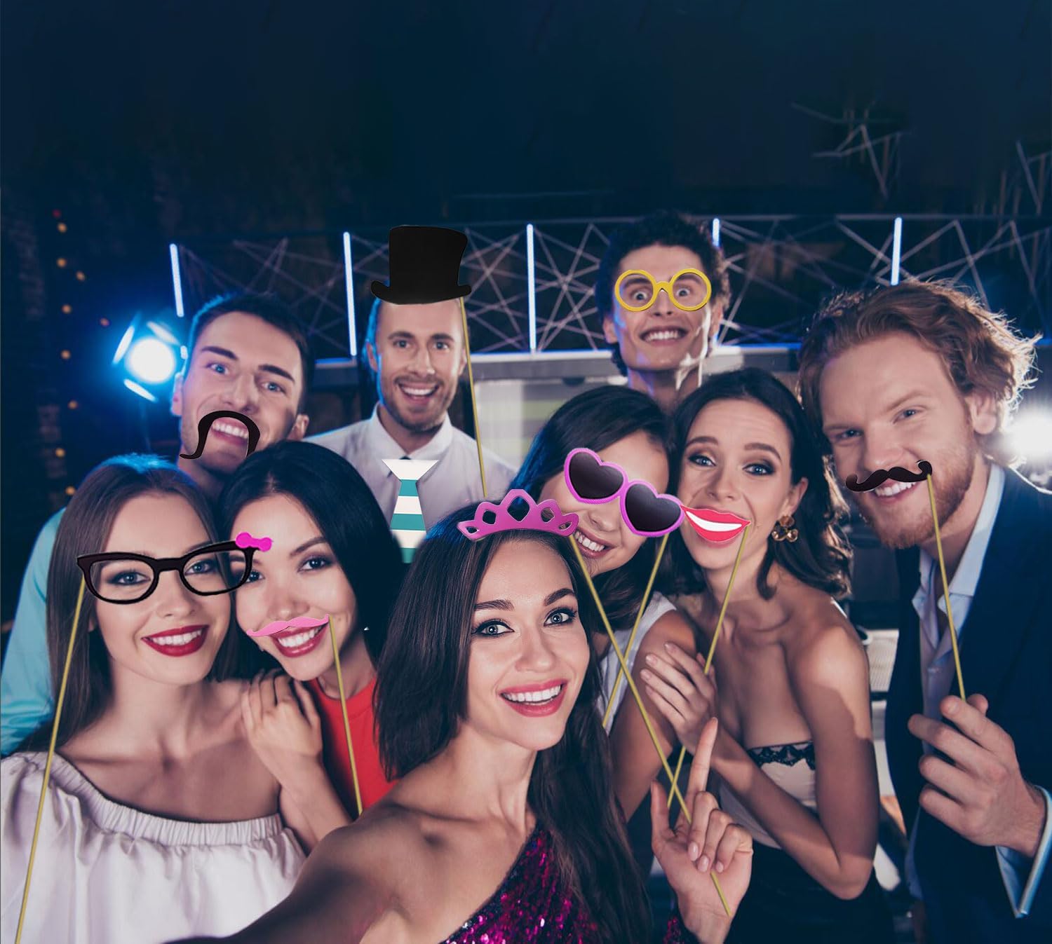 - Stunning Party Set: Featuring 80 party photo booth props, including funky glasses, disco wig, garland, inflatable musical instruments and more, also 58 glasses and beard photo props for endless fun