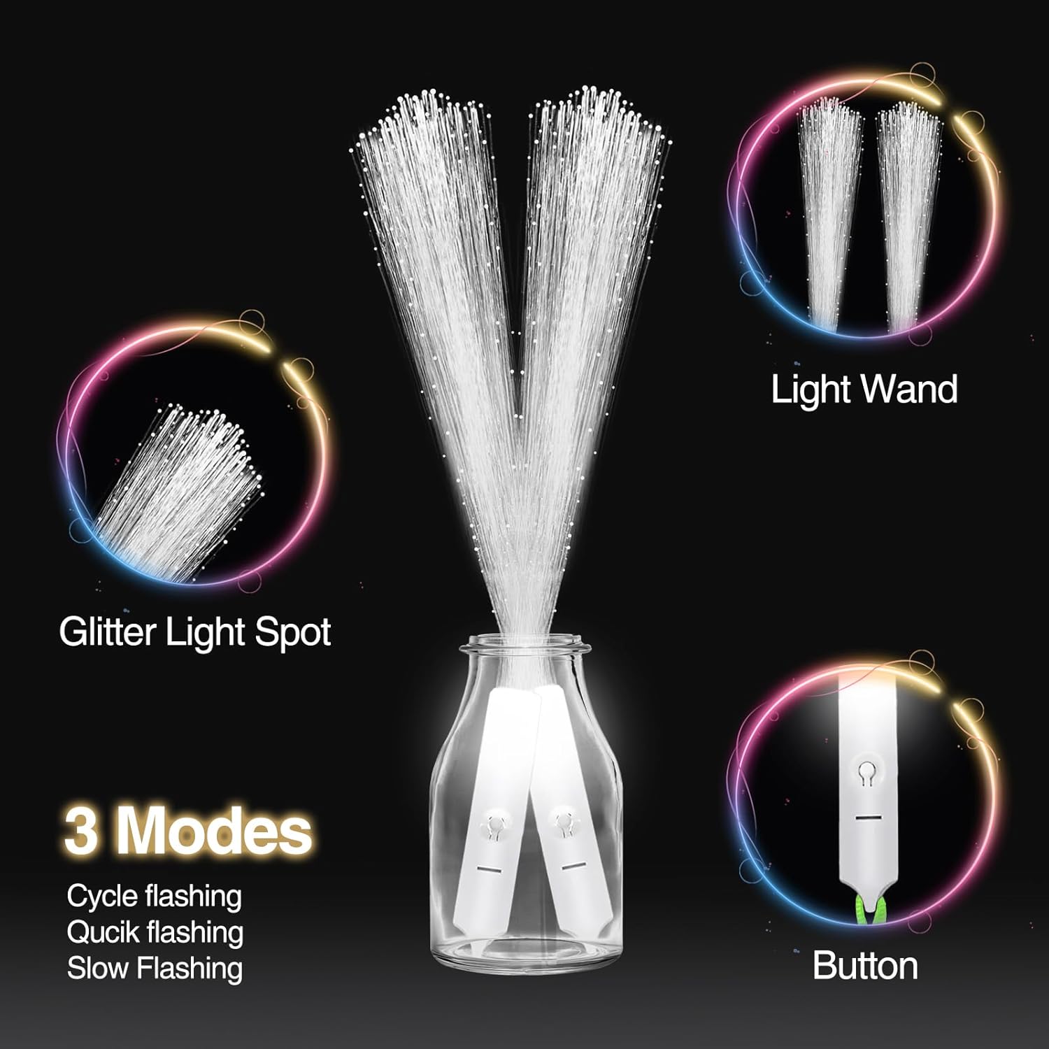 - Features: LED fiber wands offer captivating illumination, with white LED lights woven into flexible fiber optics, resulting in a dynamic and twinkling glow. Handheld light up fibre optic wand easy to switch between fast, slow cycling flashing 3 modes