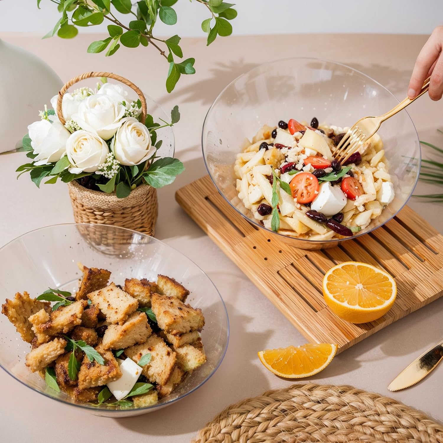 - APPLICABLE OCCASIONS: This plastic salad bowl is exquisite and elegant,suitable for most occasions,such as holiday parties,family gatherings,weddings,etc. And,even for daily use,clear salad bowl is no problem