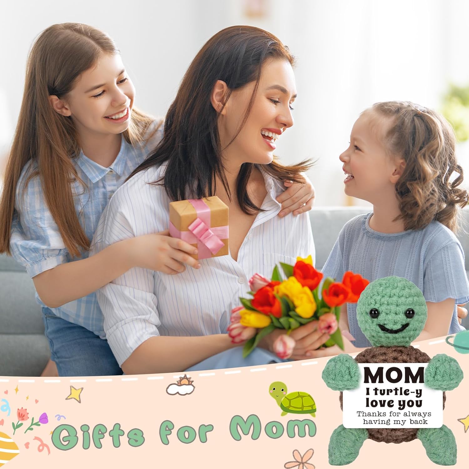 - Gifts for Mom: Positive crochet turtles are made of yarn and handmade from soft wool yarn, with soft and comfortable touch; this mini turtle comes with a sweet "I turtle-y love you, Mom" card - a little reminder of your love for mom that she can keep close every day