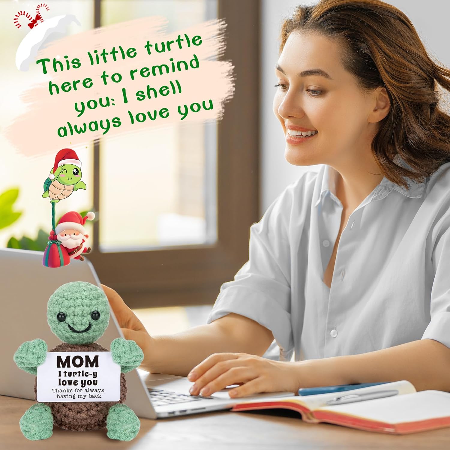 Christmas Birthday Gifts for Mom from Daughter Son, Mini Turtle Gifts for New Bonus Step Mom Mama Mother in Law, I Love You Cute Stuff Things Stocking Stuffers for Moms, Handmade Crochet Turtle Decor