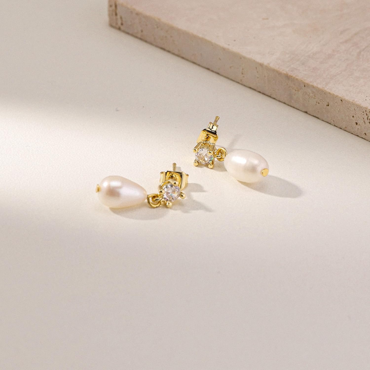 - Wedding Earrings:Our pearl drop earrings are delicate and dainty, easy to wear any time of day, anywhere. With the sparkle of the diamond stud earring at the top and the dangling pearl charm, these earrings are a dream to style in your wardrobe