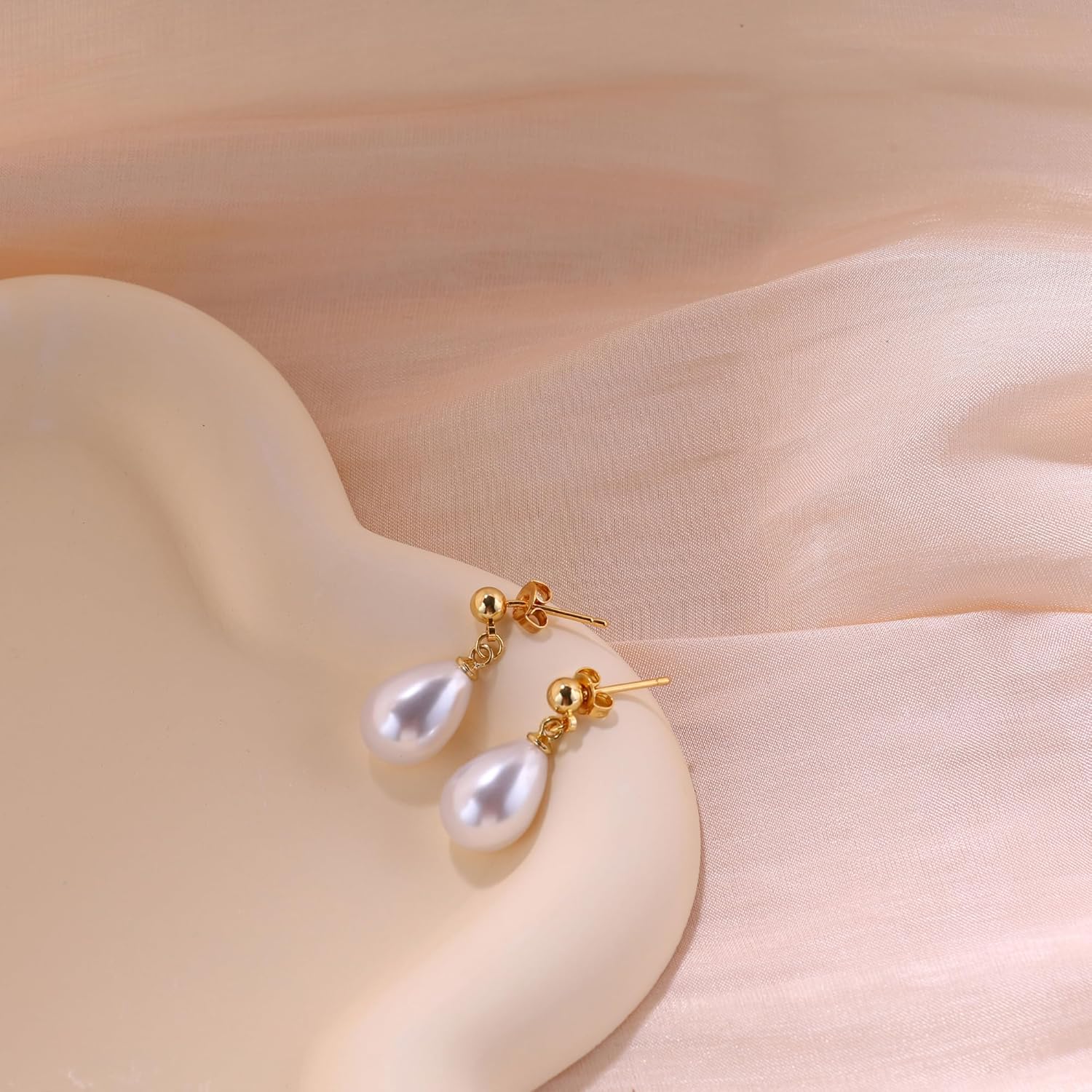 SELSHE Dangle Earrings for Women, 14k Gold Plated Pearl Drop Earring Dainty Gold Earrings for Women Trendy Cute Prom Bridal Earring Long Wedding Pearl Earring Formal Jewelry