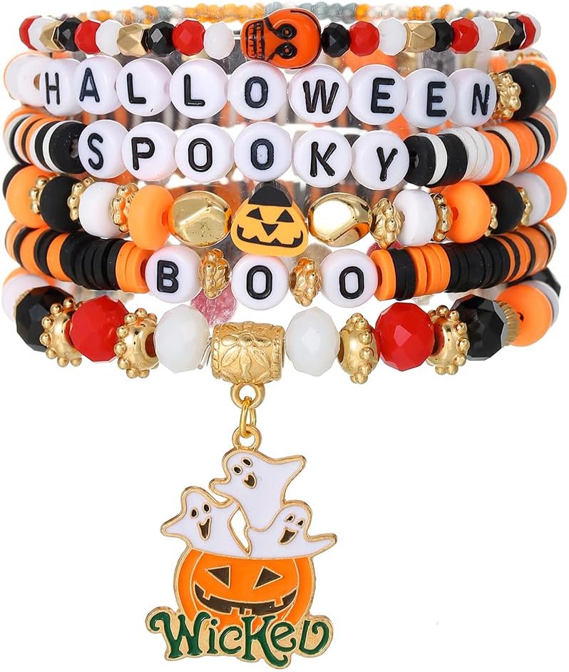 - Heishi Surfer Bracelets Set - For Halloween jewelry, aesthetic stuff Bracelets Jewelry we love a mix color of effortless layering bracelets. Bold and vibrant, the Bohemia bracelets are consist of flat clay beads and gold plated sequins on elastic bands.One package including 6 strands of heishi bead and gold bead bracelet, playful, colorful and stretch.