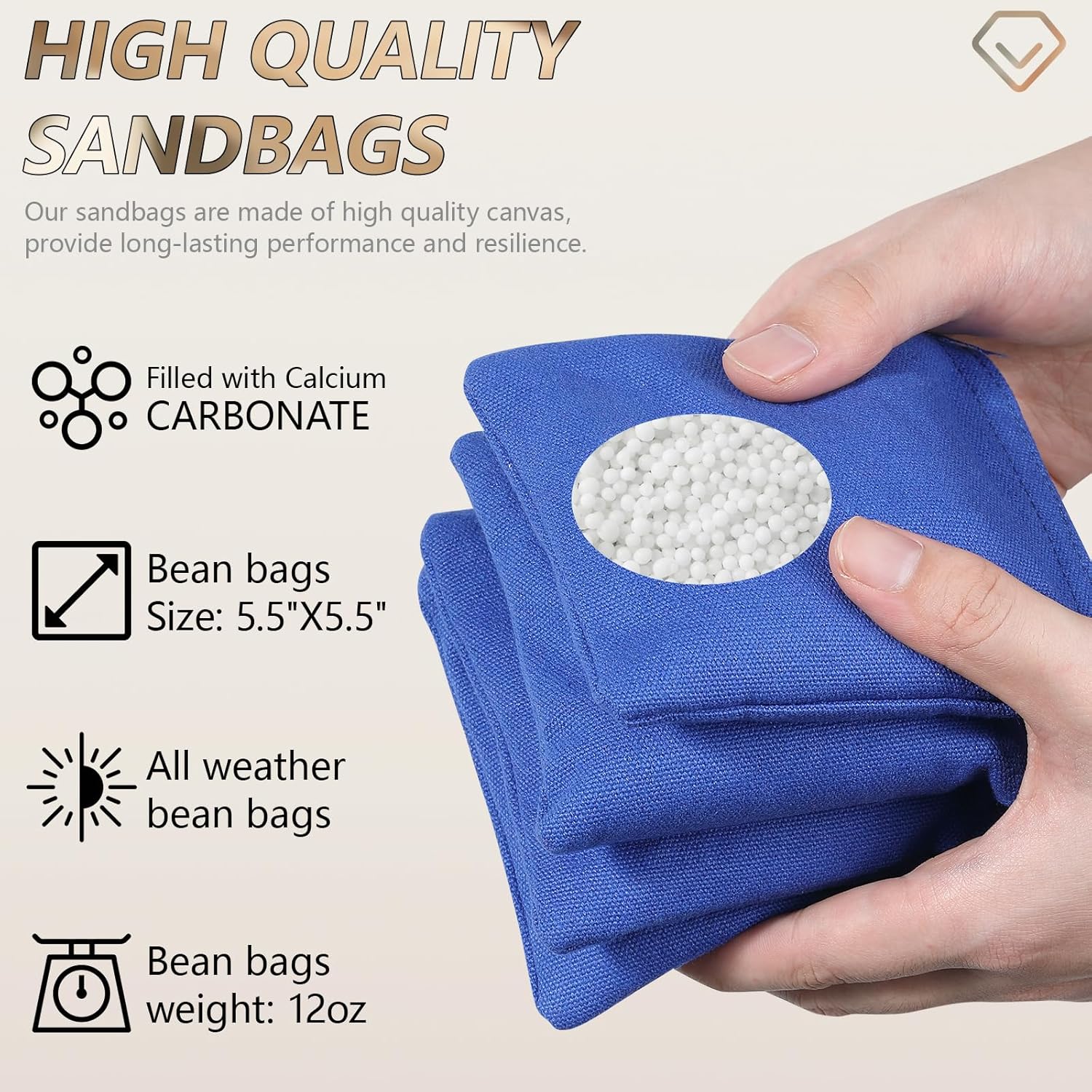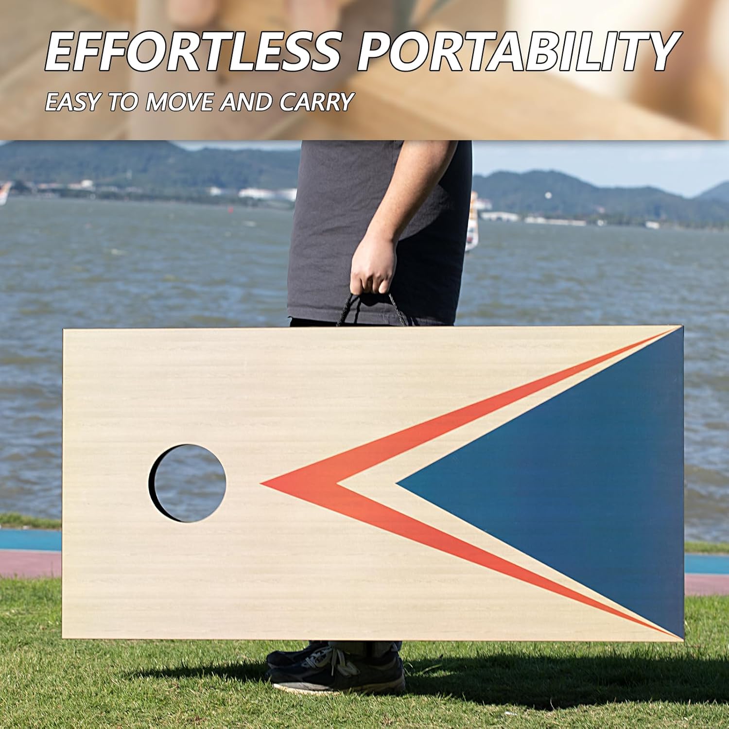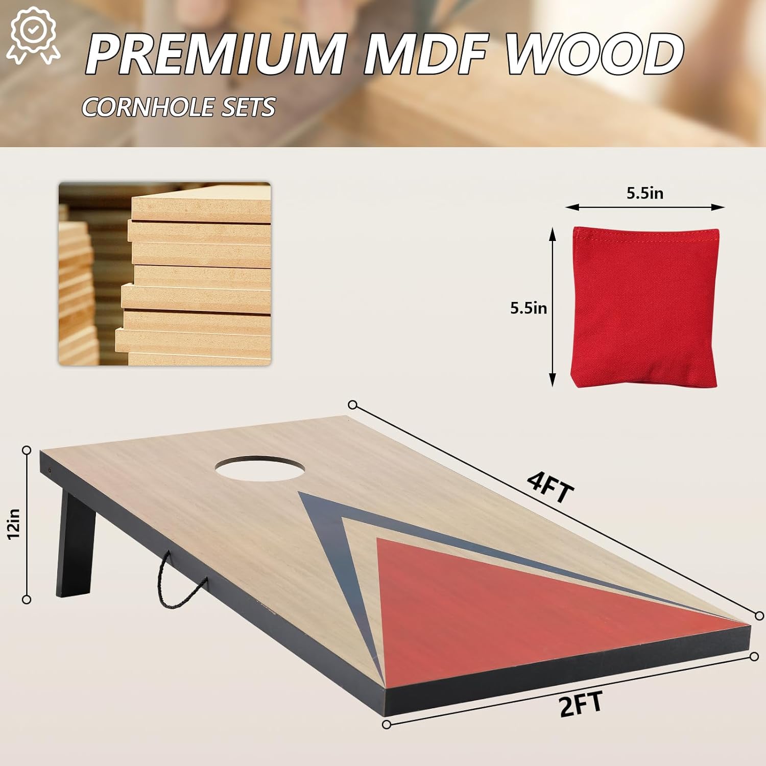 - CLASSIC CORNHOLE GAME SET:This complete cornhole set includes 2 foldable engineered wood cornhole boards (4’x2’), 8 all-weather regulation size cornhole bean bags (4 red + 4 blue). Perfect backyard and outdoor game for family and friends.