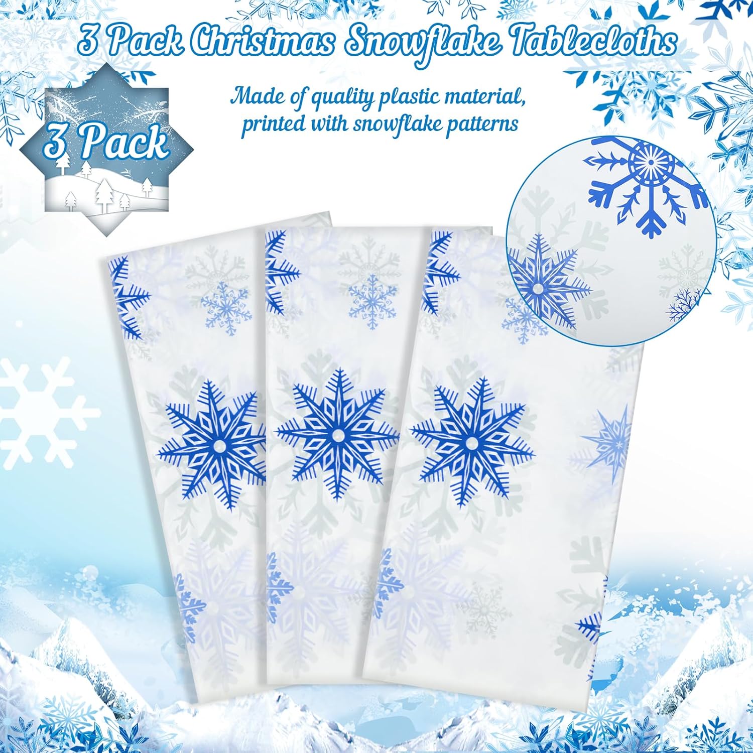 - Package Included: You will receive 3 pcs Christmas plastic tablecloths printed with blue and silver snowflake patterns on white backdrop, which sends out a strong festive vibe, decorating for Christmas or winter celebrations