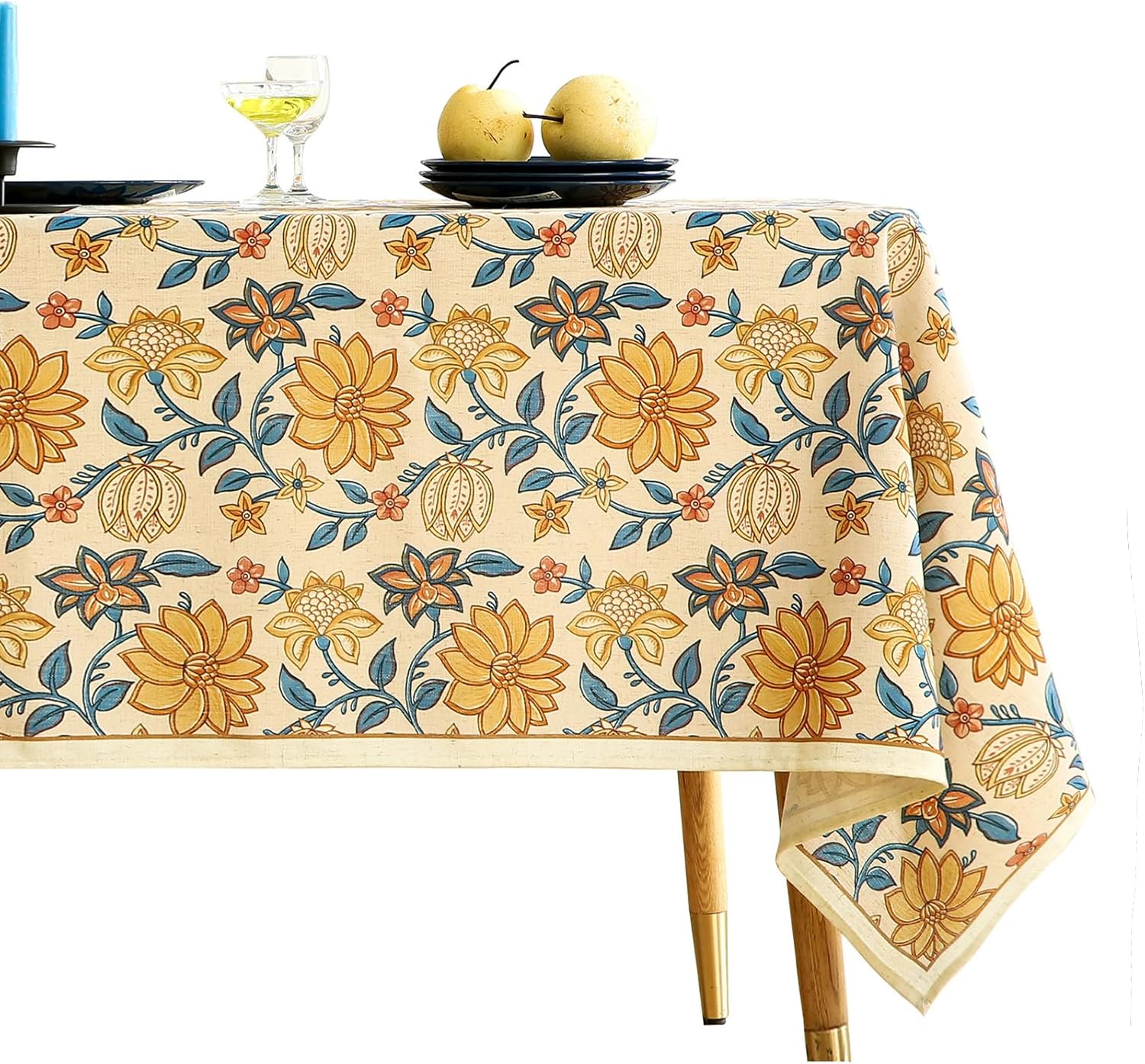 ISAENNE Designer Bohemian Floral Long Rectangle Table Cloth,Linen Colorful Tablecloth,Wrinkle Resistant Decor Tablecloths for Dining Thanksgiving Kitchen Party Christmas,63"*94"-Estevan B
