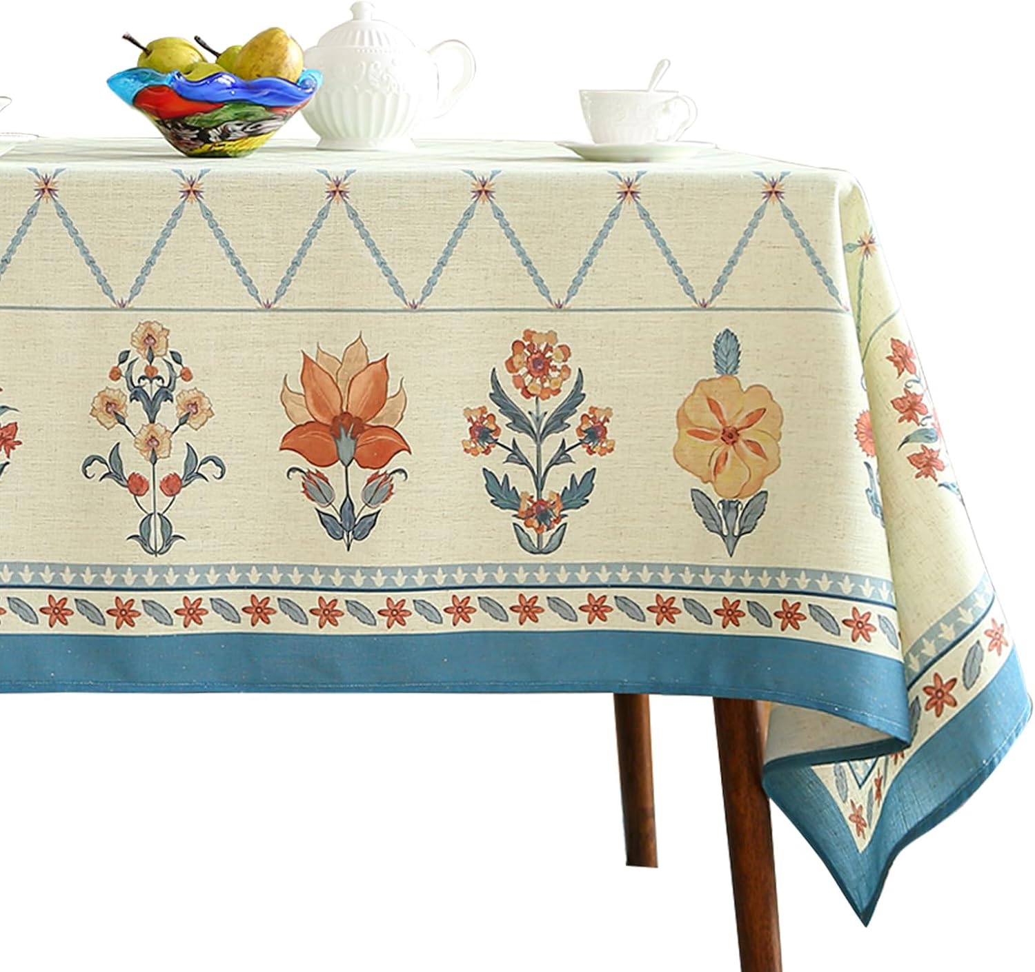 ISAENNE Designer Linen Floral Small Rectangle Tablecloth,Light Green Farmhouse Durable Table Cloth,Washable Decor Tablecloths for Dining Kitchen Thanksgiving Christmas,55"*71"-Floralsea B