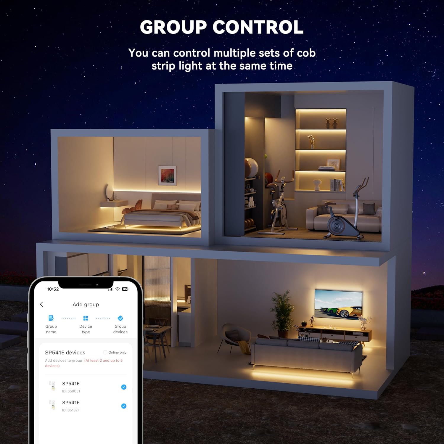 - Super Bright & Long: Never heard of COB LED strip lights? Compared to SMD LED strips, COB (Chip On Board) LED Lights have multiple chips on the PCB (Printed Circuit Board), resulting in a super even lighting performance with no dark spots! With 4800 high-quality LEDs and a 2700K color temperature, you'll enjoy incredibly bright lighting and improved color quality.The ultra-long continuous length of 32.8 feet/10 meters can satisfy you to decorate large spaces