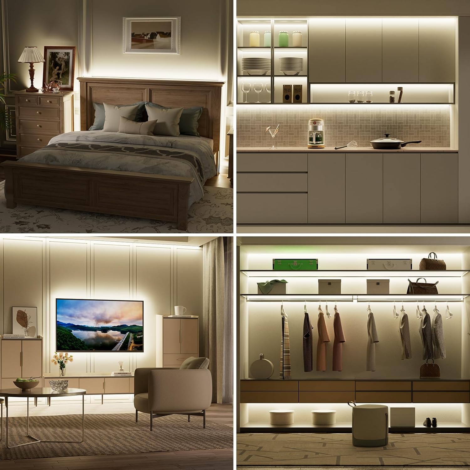 - UL Listed, Safe and Durable: The working voltage of the strip light is 24V low voltage, very safe to touch! They are UL listed and made of lead-free materials, reliable quality and harmless to human health. With double-layer pure copper PCB board, the strip light has better conductivity and heat dissipation and is not even easy to crack, with a service life of more than 65,000 hours! The color rendering index is as high as 93+, and the color reproduction is more realistic!