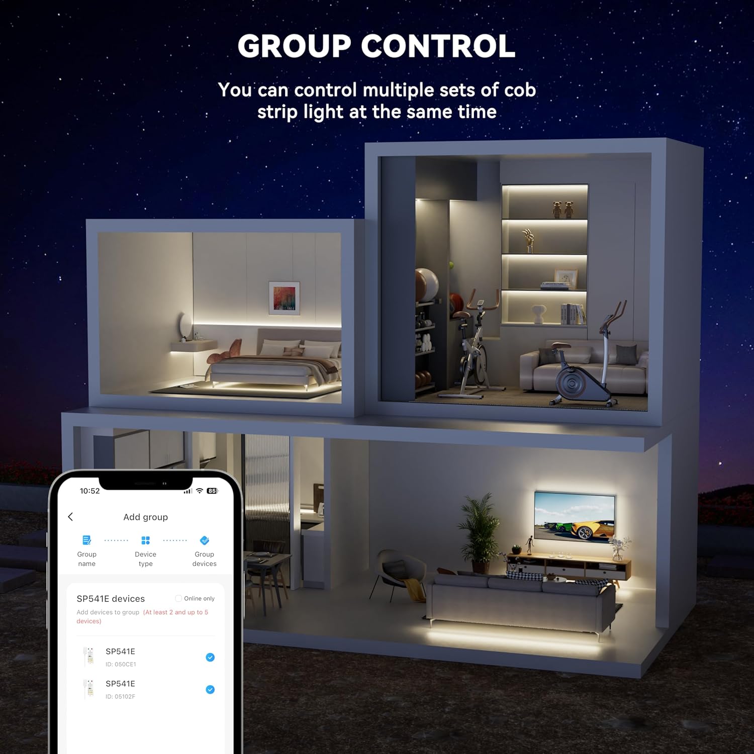 - Super Bright & Long: Never heard of COB LED strip lights? Compared to SMD LED strips, COB (Chip On Board) LED Lights have multiple chips on the PCB (Printed Circuit Board), resulting in a super even lighting performance with no dark spots! With 4800 high-quality LEDs and a 2700K color temperature, you'll enjoy incredibly bright lighting and improved color quality.The ultra-long continuous length of 32.8 feet/10 meters can satisfy you to decorate large spaces!