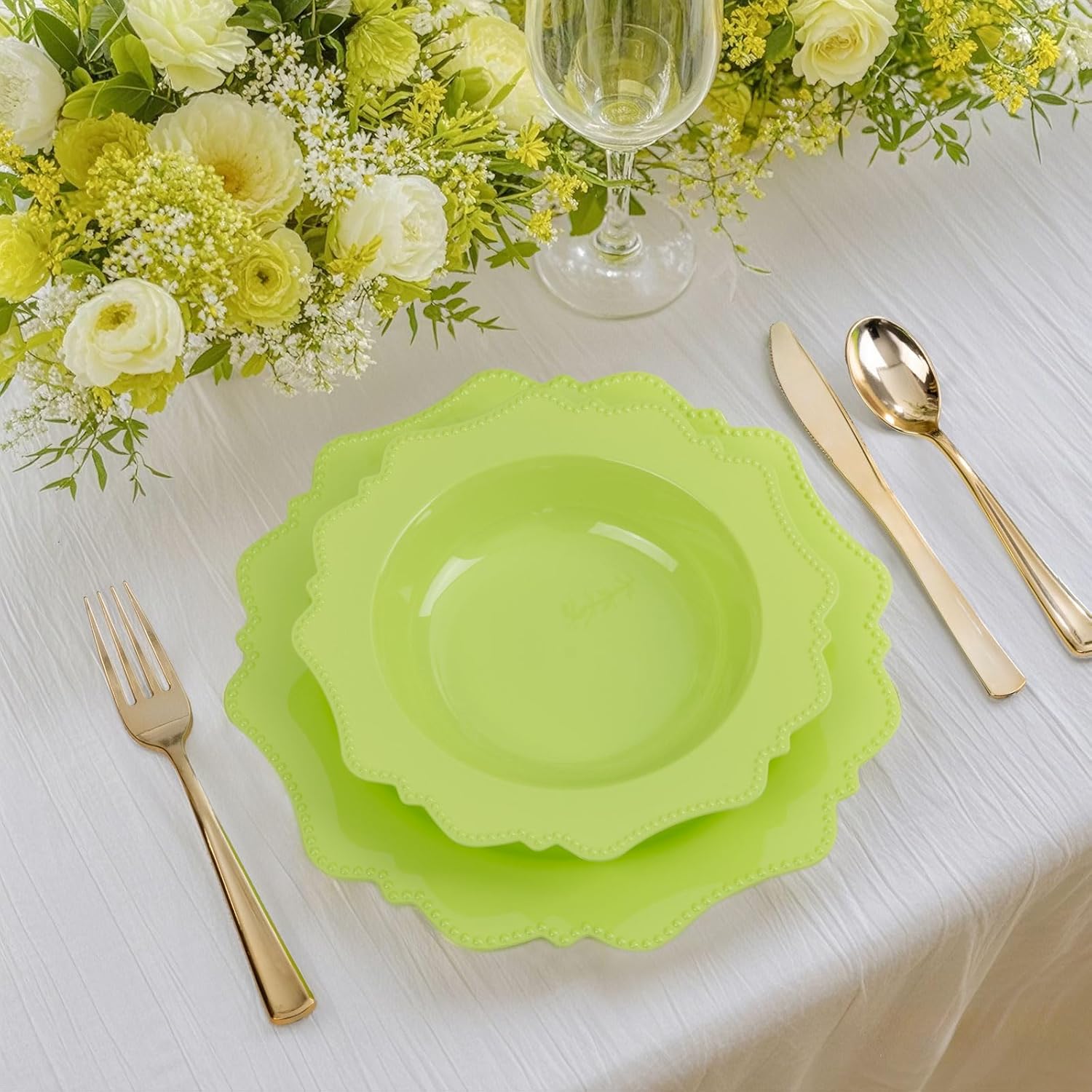 COLOSUS 60 Pack Lime Green White Plastic Bowls, 12 oz Disposable Soup Bowls, Premium Plastic Dinner Bowls,Heavy-duty Dessert Salad Bowl for Party, Wedding, Dinner, Christmas,Thanksgiving