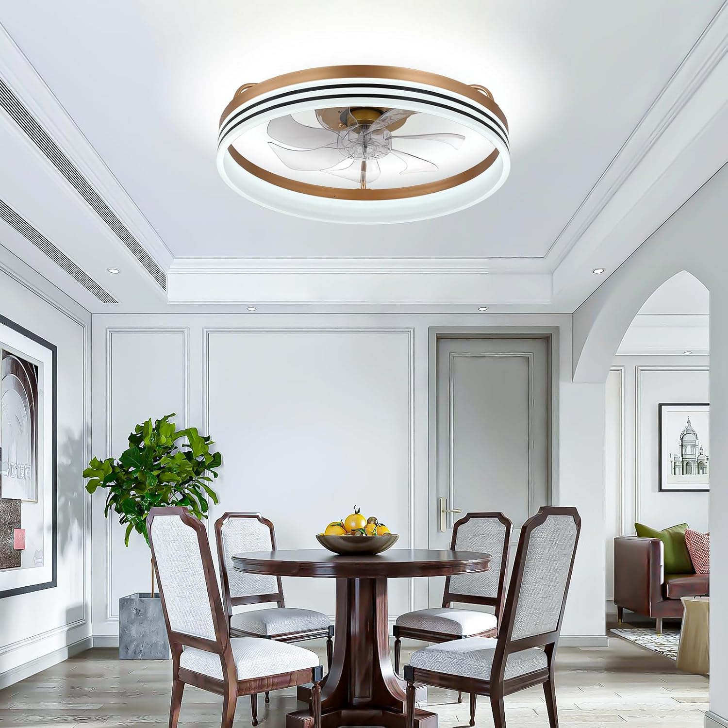 Ceiling Fans with Lights and Remote 20" Dimmable Fandelier LED Fan Light Modern Ceiling Fan, Low Profile Flush Mount Ceiling Fan Lights for Bedroom Kitchen and Living Room(Gold)