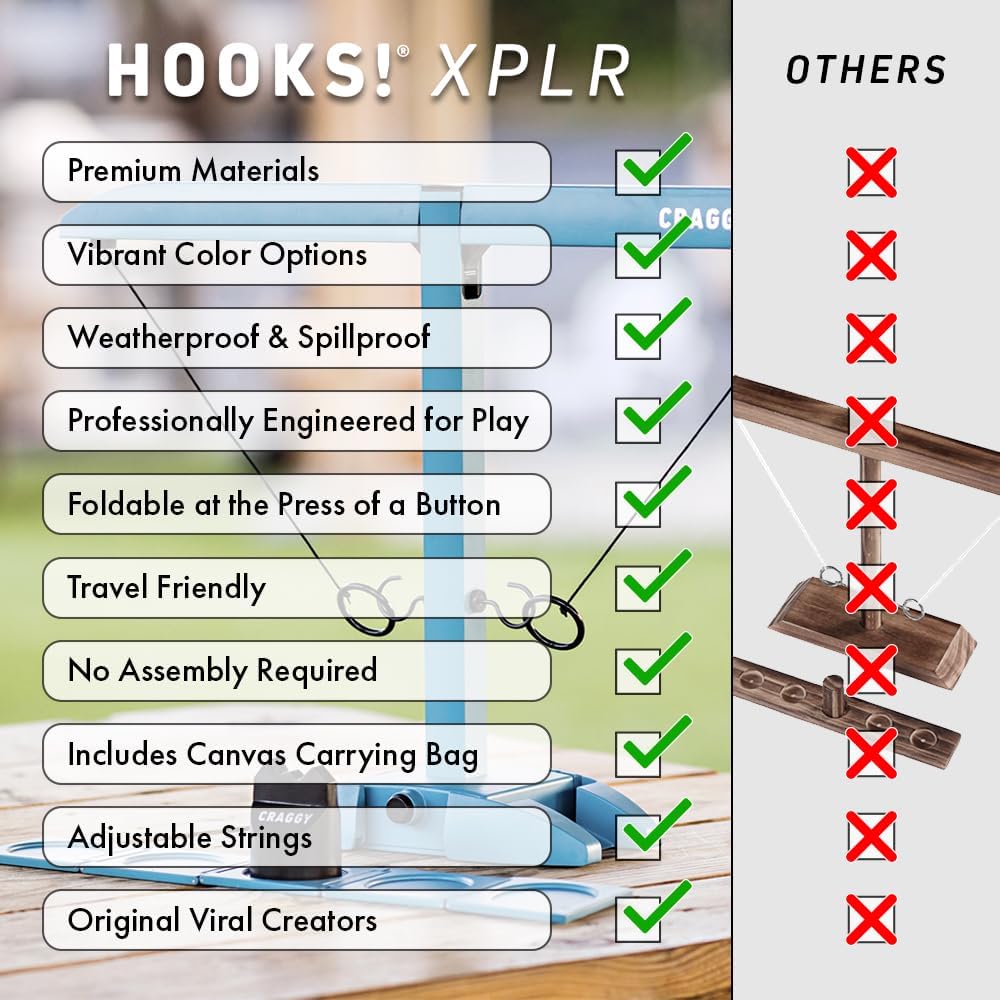 Craggy Games Ring Toss & Shot Ladder Game Hooks XPLR - Portable Aluminum Hook and Ring for Indoor/Outdoor Games - Family Game Night, Party Games, Travel, Multiplayer for Ages 12+