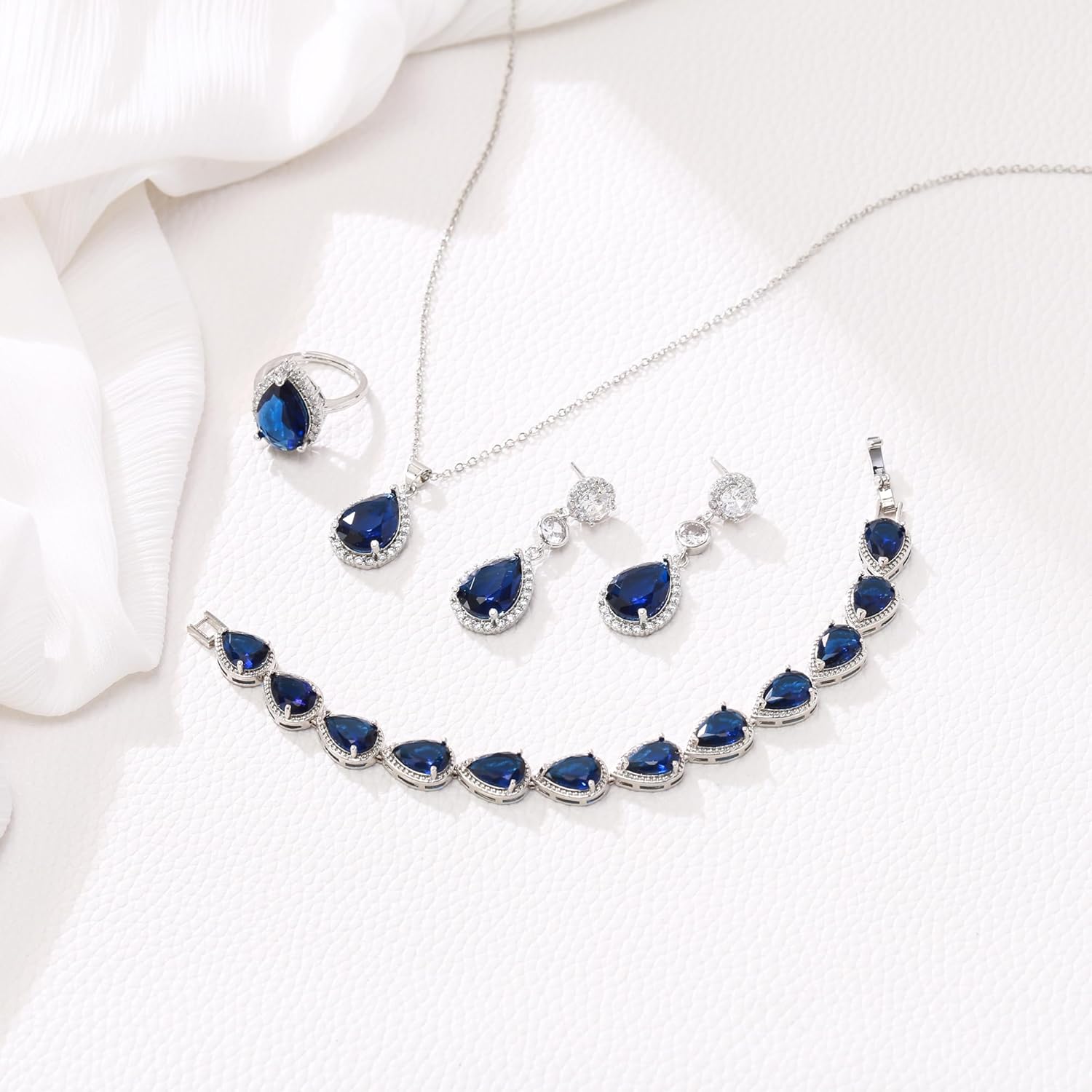 EleQueen Water Drop Pendant Necklace Long Dangle Earrings Tennis Bracelet Set, Sparkle Cubic Zirconia Teardrop Wedding Jewelry Sets for Bride Bridesmaid