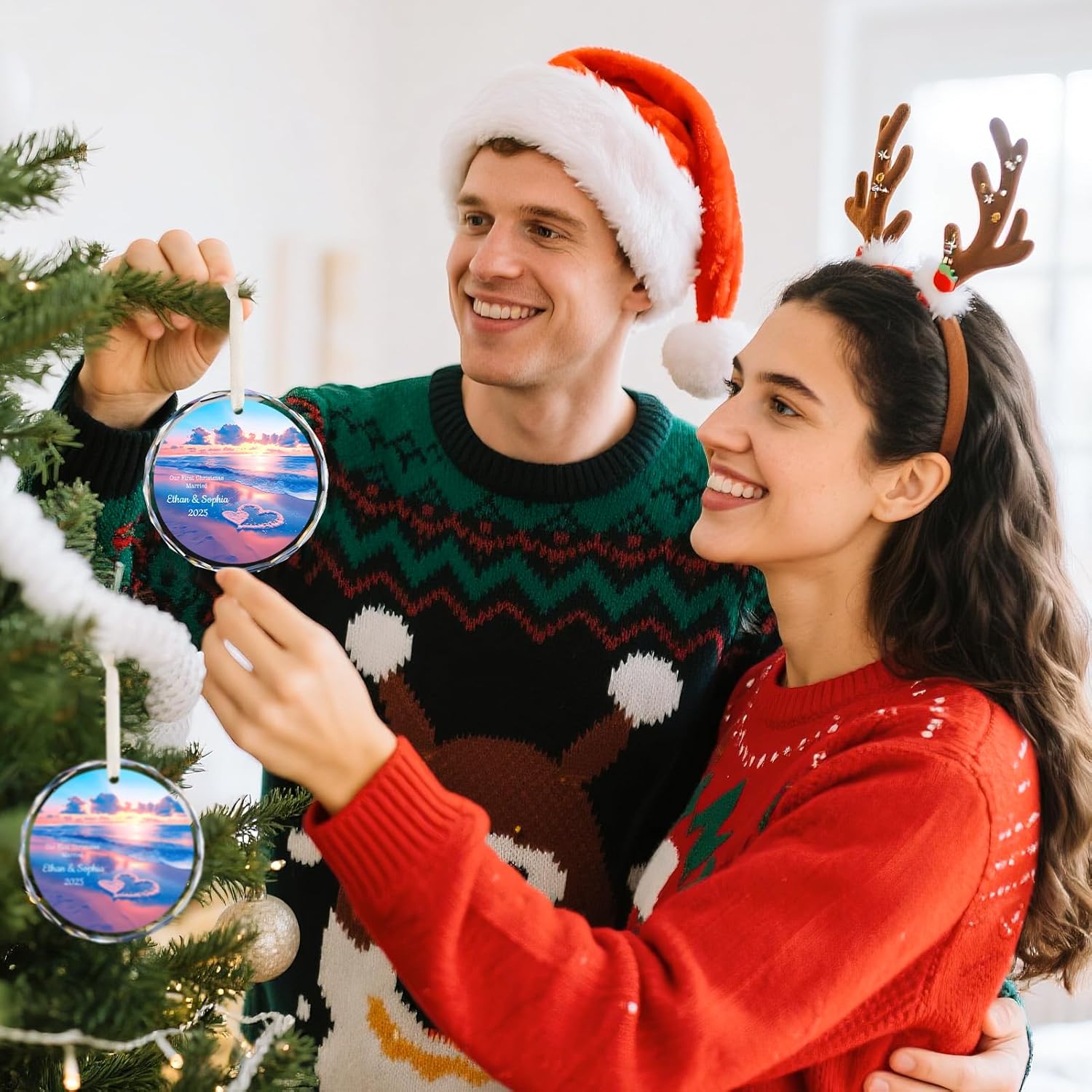 - CUSTOM CHRISTMAS ORNAMENTS FOR COUPLES: Click "Customize Now" to start personalize your own ornament special with name, date etc. Let this ornament express your warmest and most genuine wishes to a newlywed couple embarking on the beautiful journey of marriage. For your future mate, this personalized christmas ornament 2025 will commemorate the important things in life & create lasting and loving memories.