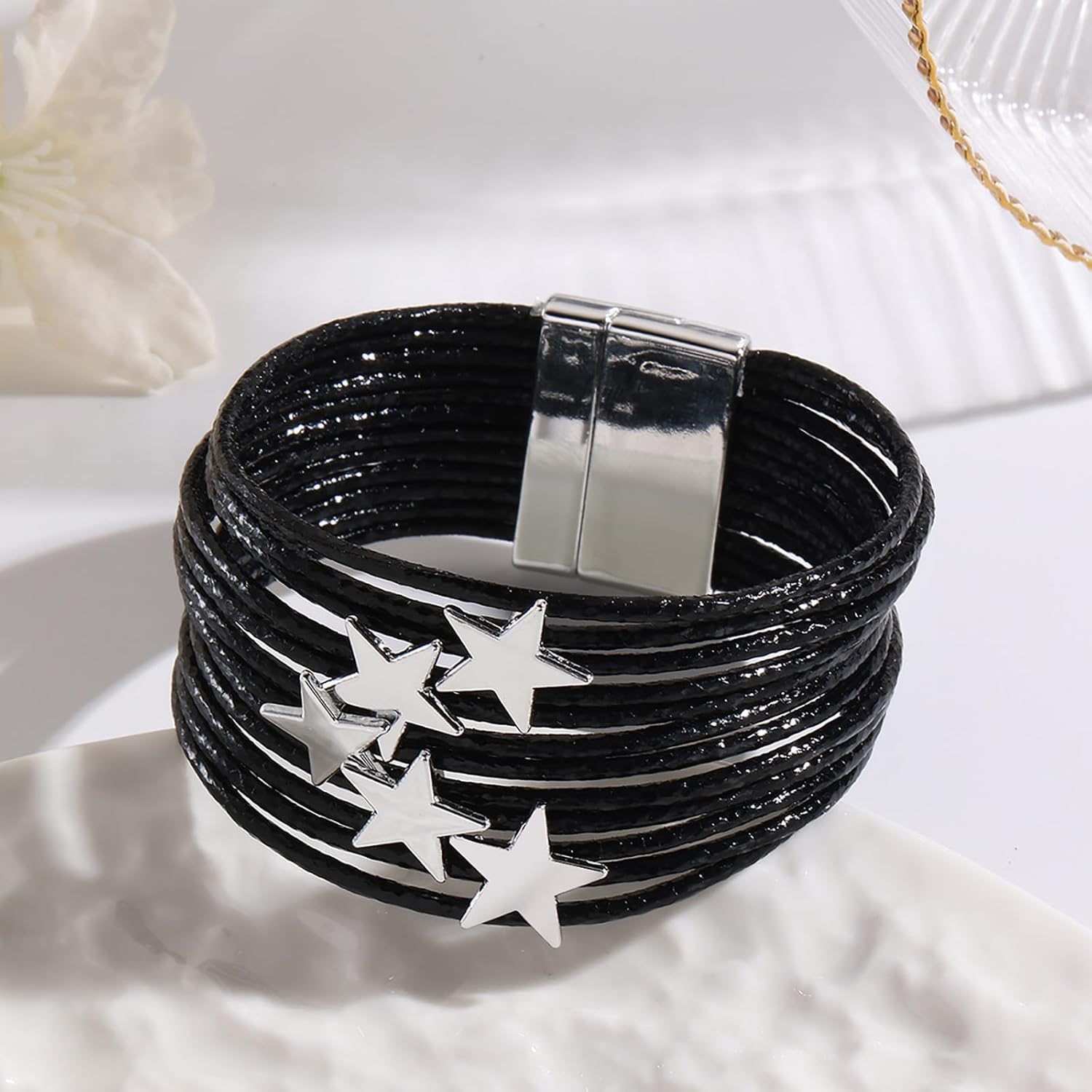 - 【SUPERIOR QUALITY】 Our Leather Cuff Bracelets is carefully crafted by handmade with environmental leather and high-grade alloy clasp to ensure you get a durable and exquisite bracelet. Stranding with premium accessories makes this wrap bracelets looks gorgeous and trend appearance, it will satisfying your taste in fashion.