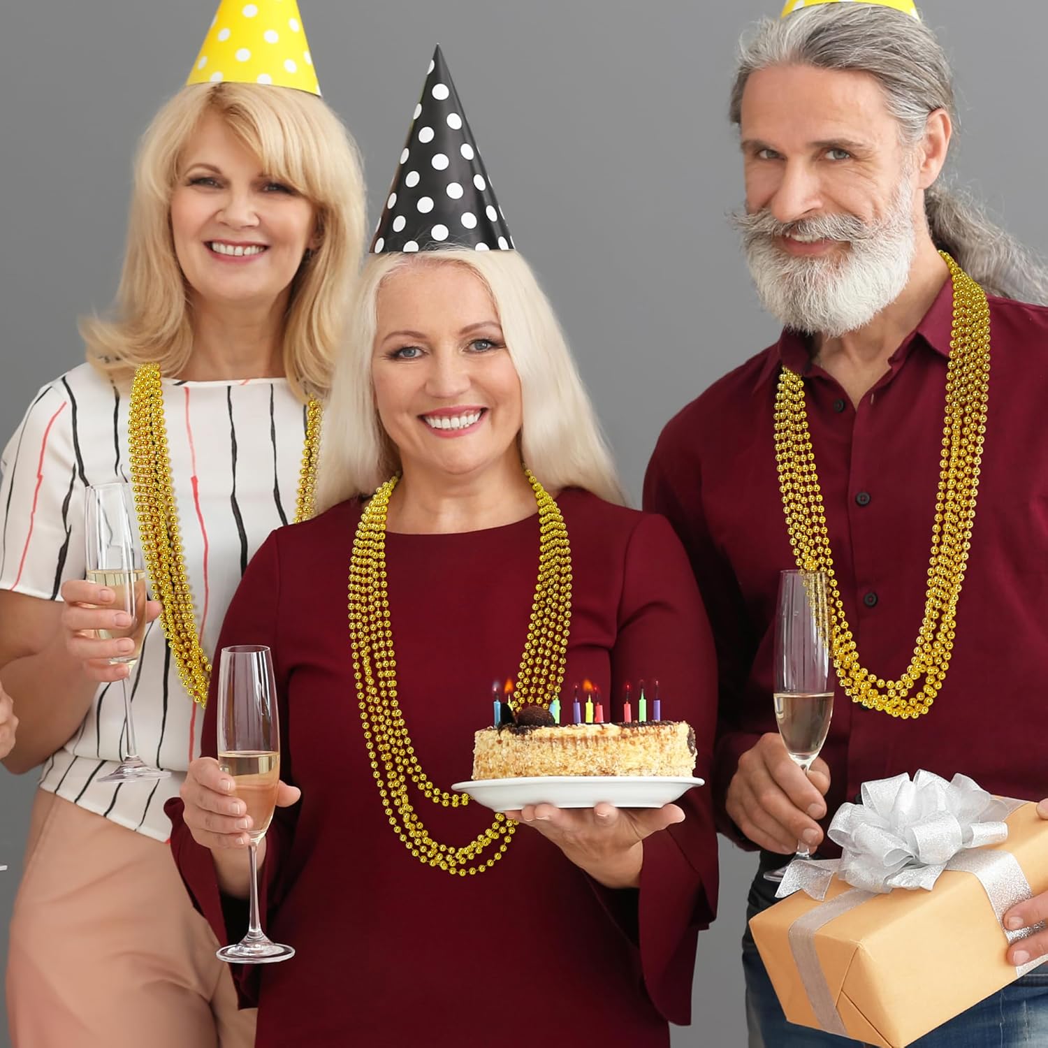 - Celebrate in Style: Receive a set of 12 Mardi Gras beads in dazzling gold, perfect for showcasing your charm at any festivity. These beaded necklaces are the ultimate party supplies for Mardi Gras and beyond.