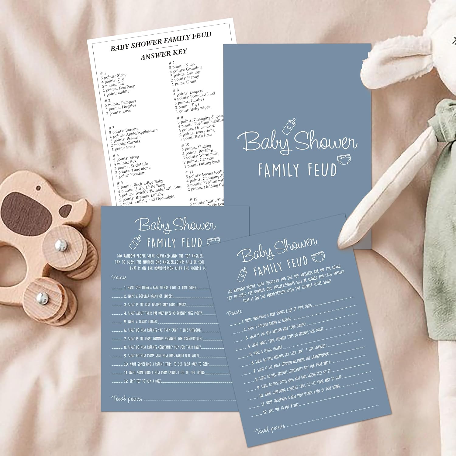 Family Feud Game - Pack of 30 Cards, Answer Key, Boy & Girl Baby Shower Decorations, Feud Game Supplies-01D-Mazarine