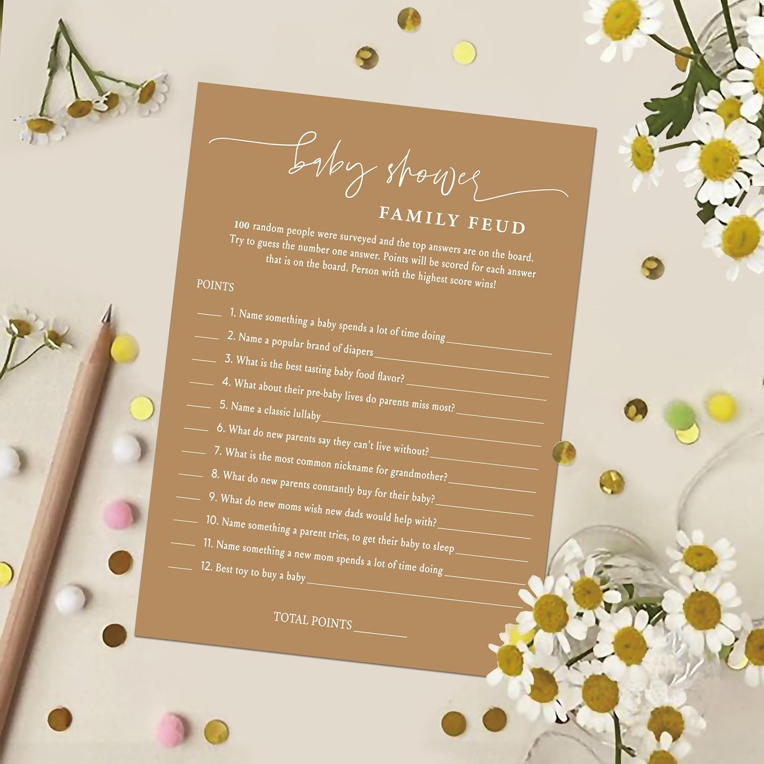 Family Feud Baby Shower Game - Pack of 30 Cards, Answer Key, Gender Neutral Decorations, Feud Game Supplies-06F-Caramel