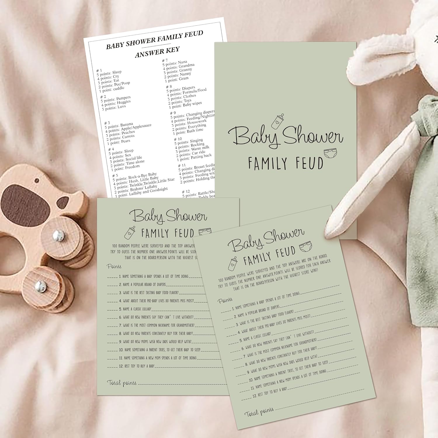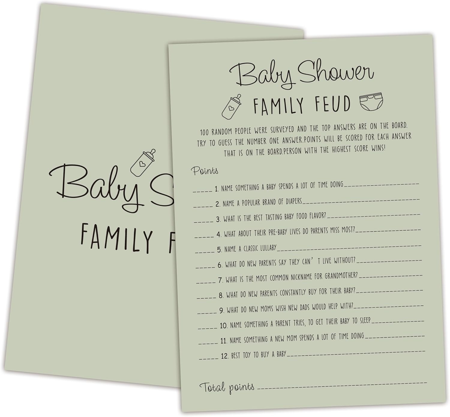 Baby Shower Family Feud Game - Pack of 30 Game Cards 1 Answer Key, Baby Shower Game for Boy & Girl, Gender Neutral Baby Shower Decorations, Baby Feud Game Supplies-01E-Atrovirens