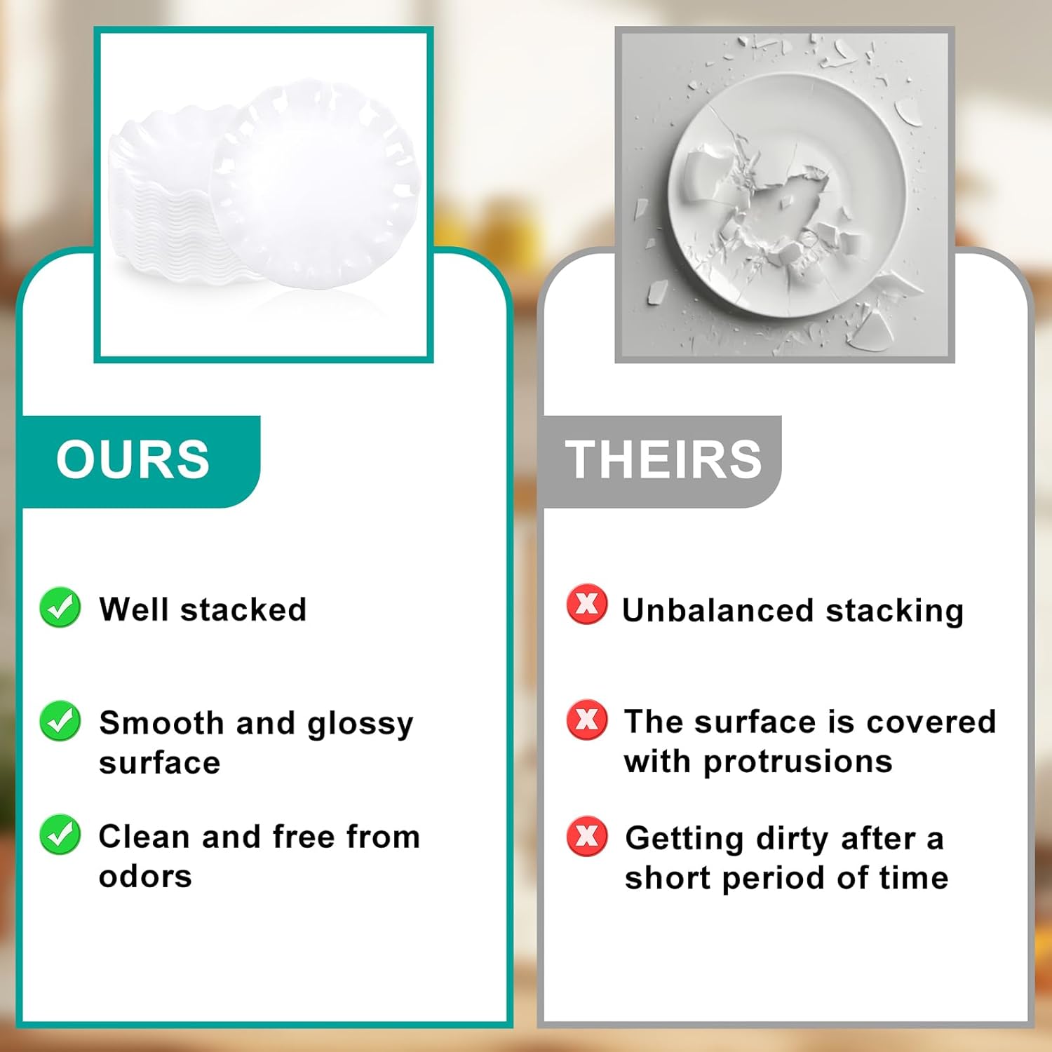 - 【Flexible Combination of 20 piece set】The scalloped plastic plates includes 20pcs 10 inch dinner plates,suitable for gatherings or backup use of 20 people.The pure white minimalist design can be used alone or paired with other tableware to upgrade the dining table style,making it the cost-effective first choice for family meals,outdoor picnics camping ,or holiday parties!