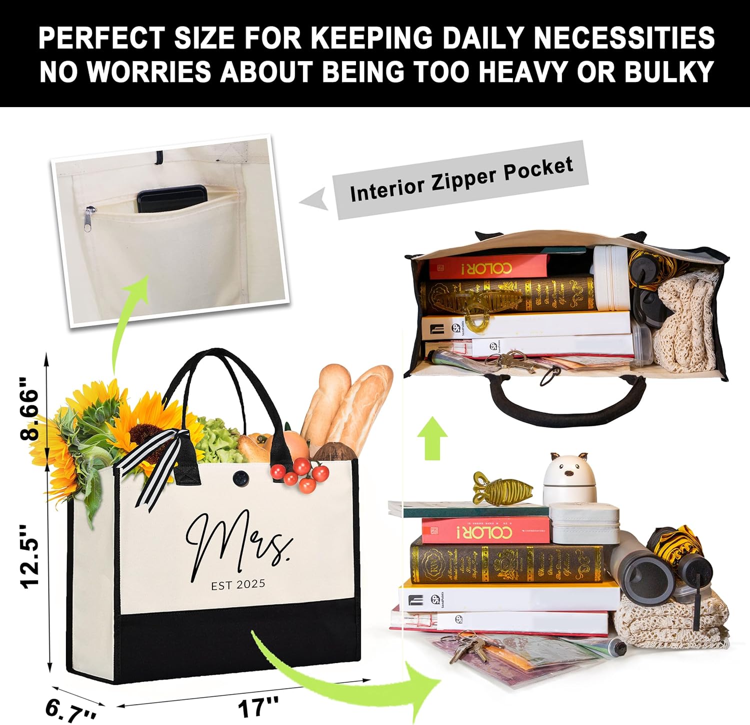 Afterprints Mrs Canvas Tote Bag for Bride 2025, Bride Gifts for Bridal Shower, Wedding Gifts for Bride to Be, Future Mrs, Engagement, Bachelorette Party Gift