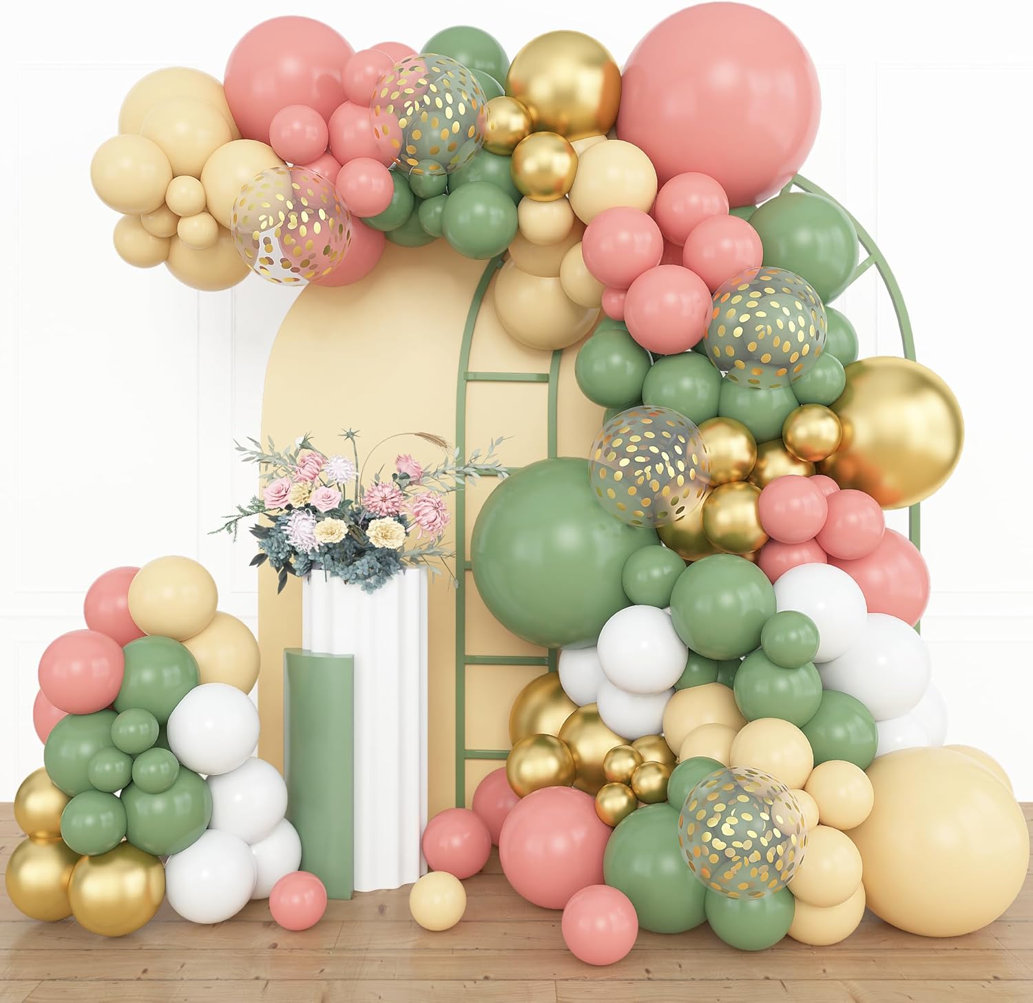 - Used In Variety Occasions: Our pink and green balloon arch kit is good choice for all kinds of parties and special occasions; Whether you're hosting a wedding, baby shower, home decoration, graduation ceremony, engagement party, first communion decoration, safari jungle birthday parties, our sage green party decorations bring a delightful and charming touch; You can hang them on trees, walls, windows, doorways, dining tables and anywhere you like; Come to organize an unforgettable party