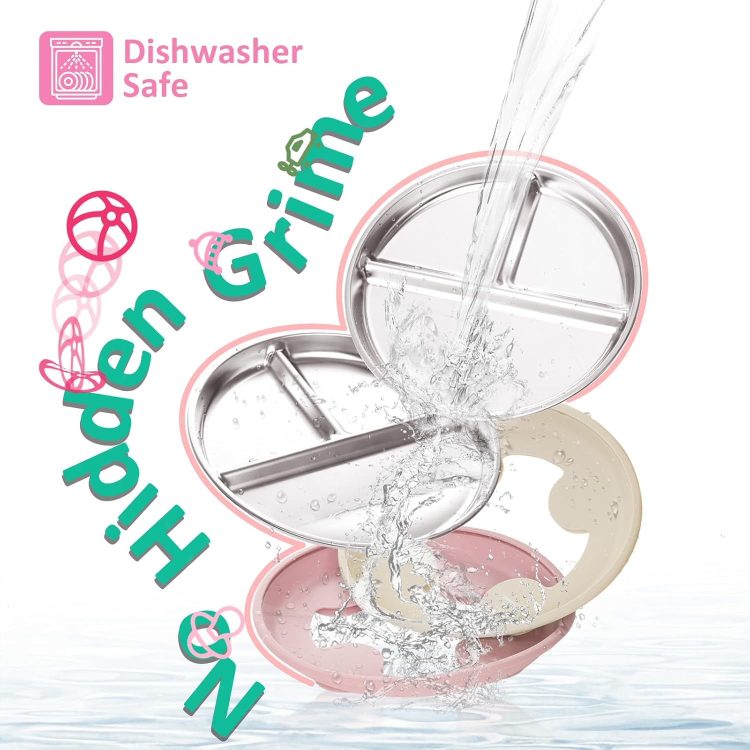 - Hassle-Free Cleaning: Resistant to food stains like carrots, the smooth stainless steel surface is easy to clean. Both the toddler plate and silicone suction sleeve are dishwasher-safe, making cleanup quick and stress-free for busy parents
