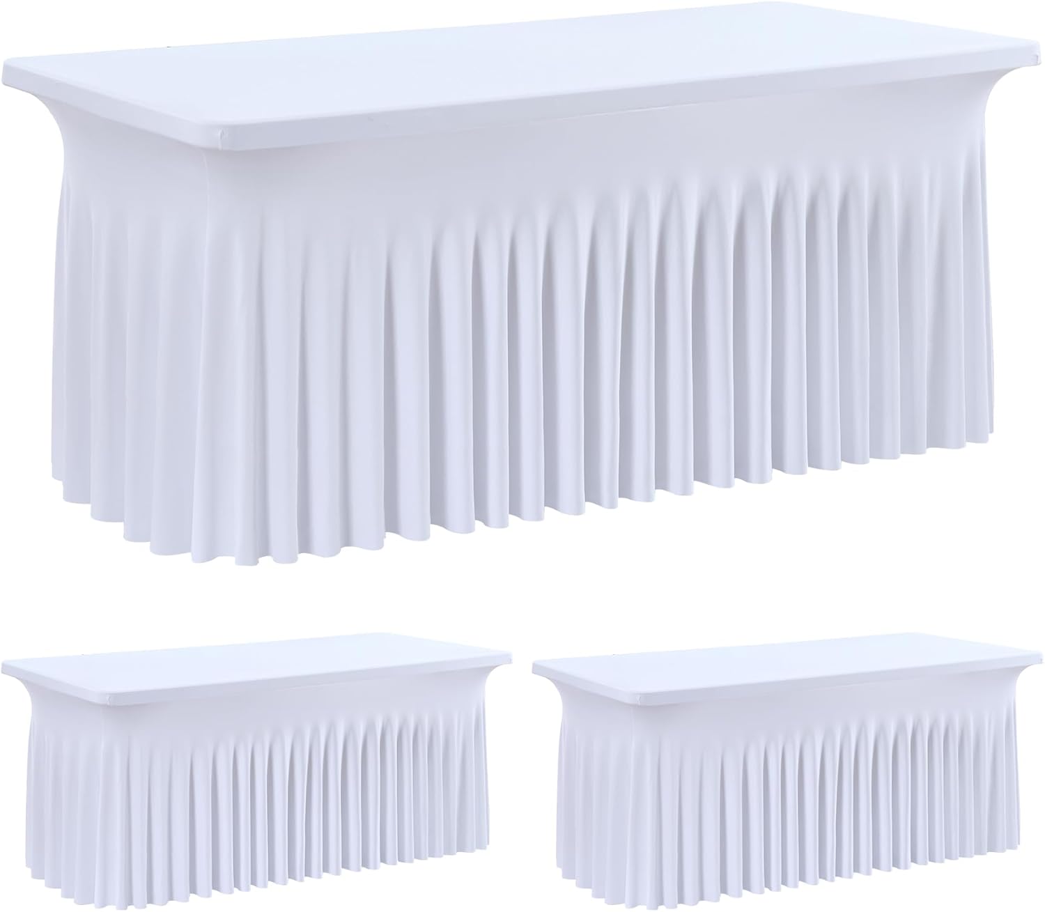leegleri 2Pack White Spandex Table Clothes for 4 Foot Rectangle Tables, Wrinkle Free 4ft Table Cover, Spandex Table Skirt for 6FT Rectangle Tables-for Banquet Weddings Parties