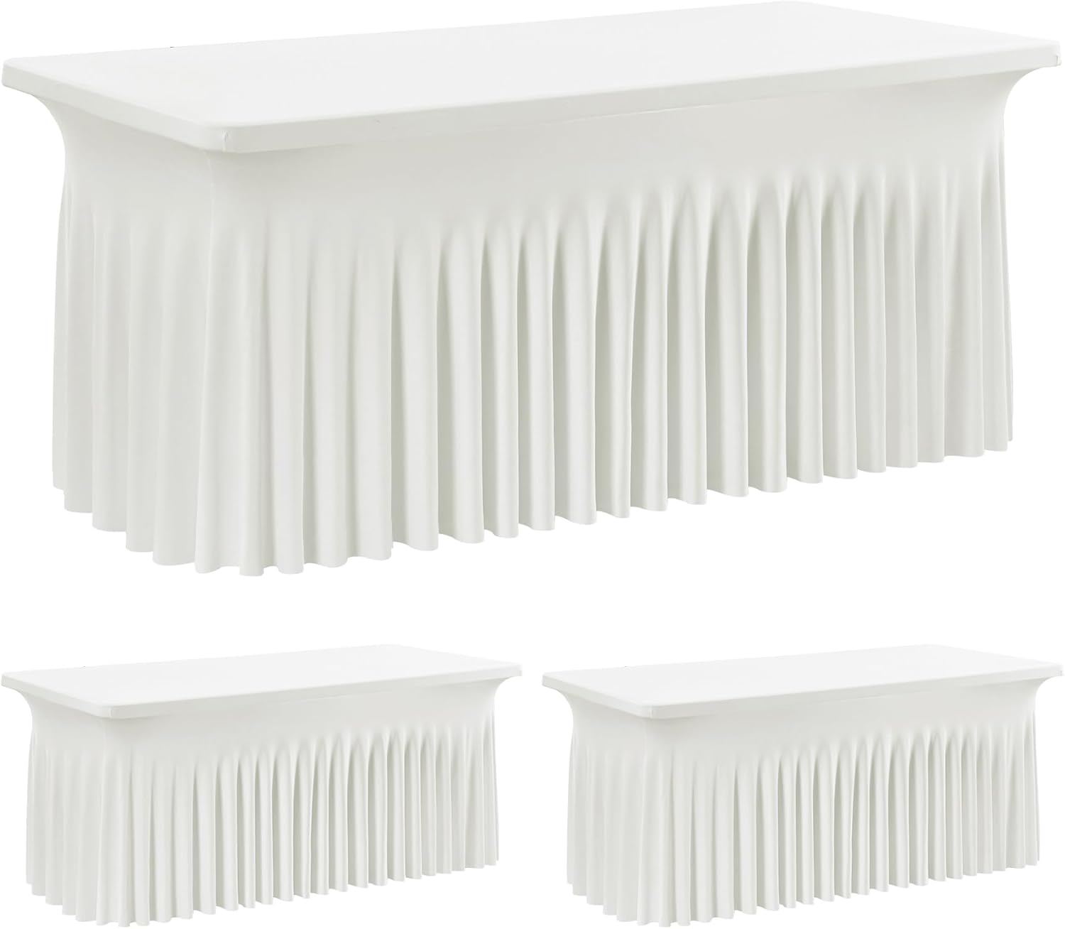 - Stretch Tablecloth for 8 Foot RectangleTables: You will receive 2 Pack ivory table covers for 8 foot rectangle tables. The table covers for 8 foot tables is designed with beautiful and elegant skirt look which makes it look deffirent from the original ones. Its silky material which will make your party looking more classy. Leegleri spandex table cloths with skirt will bring a neat and elegant look to your table and covers all supplies which you prefer to hide under the table.manteles de mesa de tela para fiestas